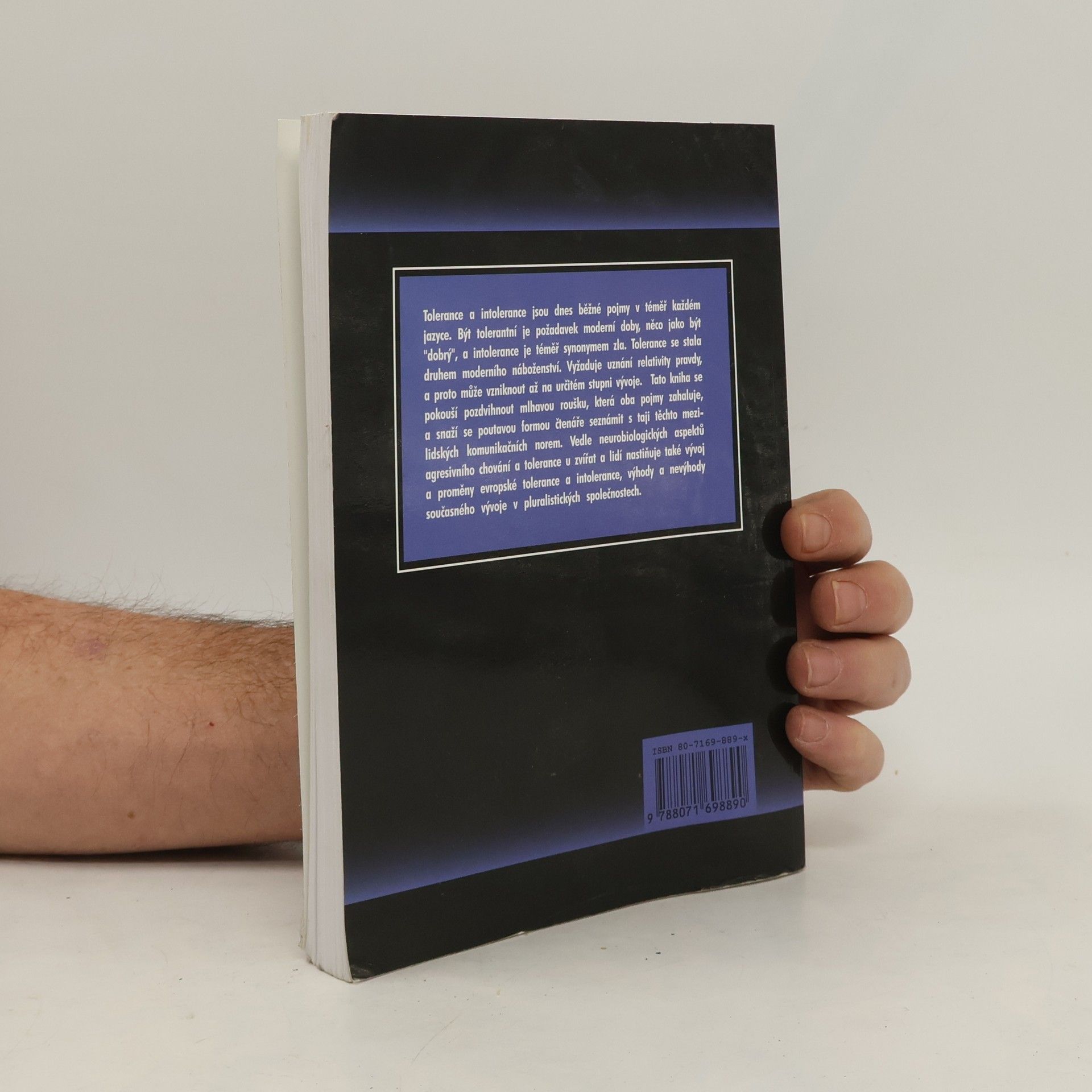 Tolerance a intolerance jsou dnes běžné pojmy v téměř každém jazyce. Být tolerantní je požadavek moderní doby, něco jako být "dobrý", a intolerance je téměř synonymem zla. Tolerance se stala druhem moderního náboženství. Tolerance vyžaduje uznání relativity pravdy, a proto může vzniknout až na určitém stupni vývoje. Tato kniha se pokouší pozdvihnout mlhavou roušku, která oba pojmy zahaluje, a snaží se poutavou formou čtenáře seznámit s taji těchto mezilidských komunikačních norem. Nastiňuje vývoj a proměny evropské tolerance a intolerance, výhody a nevýhody současného vývoje v pluralistických společnostech.