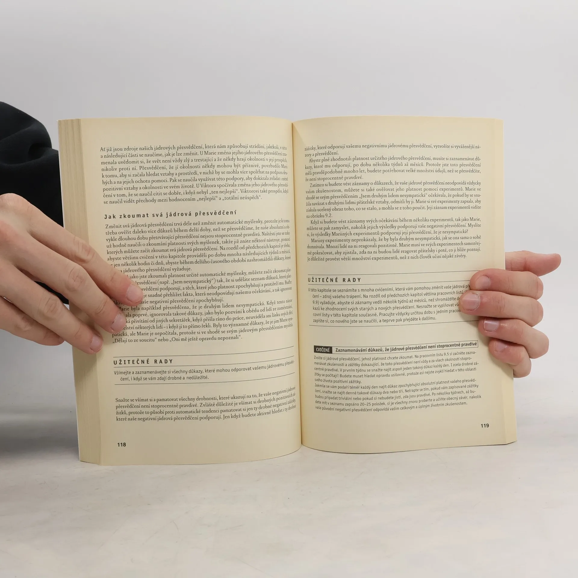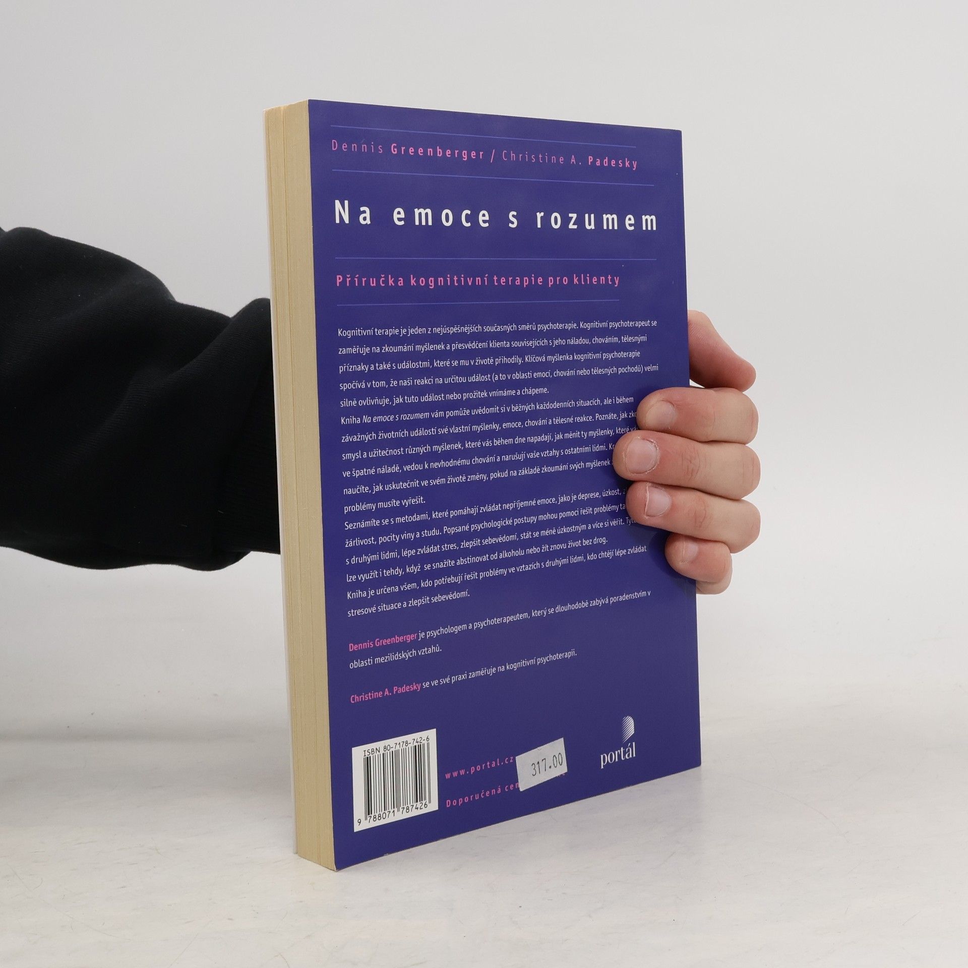 Kognitivní terapie je jedním z nejúspěšnějších směrů psychoterapie, zaměřujícím se na myšlenky a přesvědčení klienta, které ovlivňují jeho náladu, chování a tělesné příznaky. Klíčová myšlenka spočívá v tom, že naše reakce na události jsou silně ovlivněny tím, jak je vnímáme a chápeme. Tato příručka vám pomůže uvědomit si své myšlenky, emoce a chování v každodenních situacích i při závažných životních událostech. Naučíte se zkoumat smysl a užitečnost různých myšlenek, měnit ty, které vás udržují ve špatné náladě, a řešit problémy, které je třeba vyřešit. Seznámíte se s metodami, jak zvládat nepříjemné emoce, jako jsou deprese, úzkost, hněv, panika, žárlivost, pocit viny a studu. Tyto psychologické postupy vám pomohou zlepšit vztahy, lépe zvládat stres, zvýšit sebevědomí a stát se méně úzkostnými. Mohou být také užitečné při abstinenci od alkoholu nebo drog. Kniha je určena všem, kteří chtějí řešit problémy ve vztazích, lépe zvládat stres a zlepšit své sebevědomí.