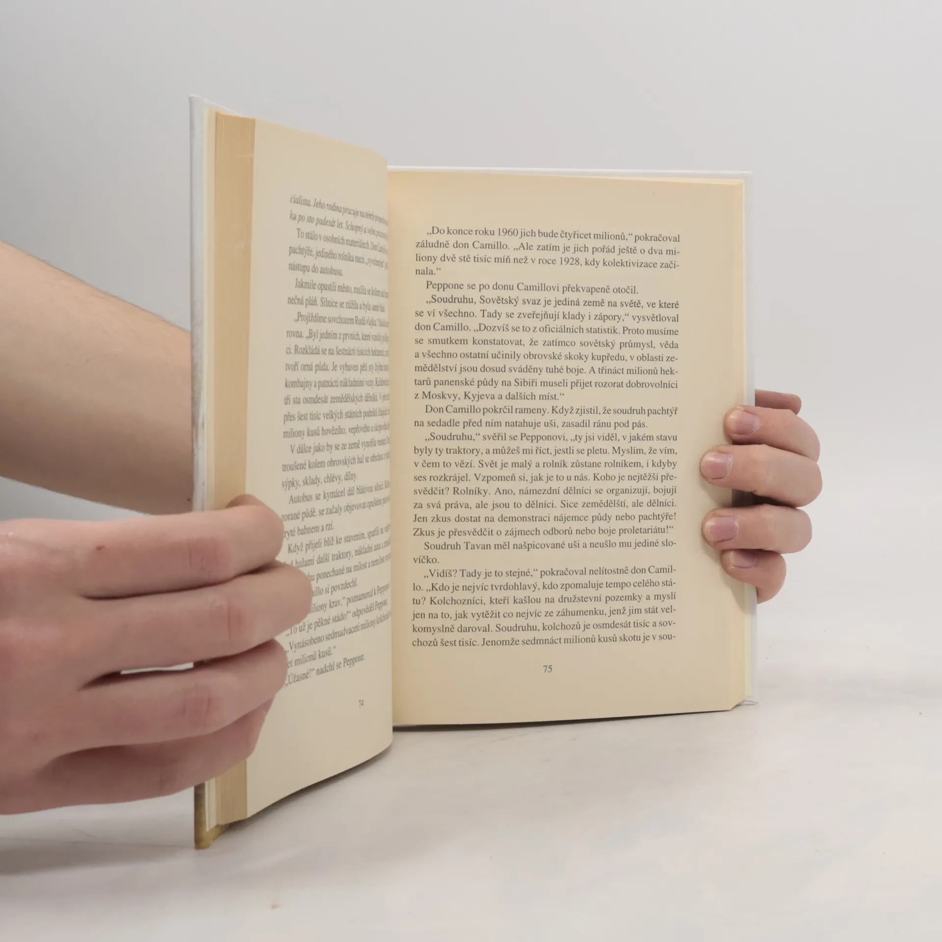 Don Camillo se stává „soudruhem“ a vyráží na cestu s novou identitou, důkladně teoreticky připraven a vybaven nejrůznějšími tematickými pomůckami. Co čeká skupinu „vyvolených“ v Sovětském svazu? A jak obstojí oni sami, až budou jejich představy konfrontovány s realitou? Může se stát, že ani stokrát prověřený a důvěryhodný soudruh není k cestě do „ráje pracujícího lidu“ veden politicky správnými důvody. Na Peppona i dona Camilla čeká spousta groteskních, vážných, směšných i záludných situací. Jak se s nimi vypořádají? Obstojí farářův převlek před zkoumavým pohledem zkušených politických pracovníků? A kolik „vyvolených“ se vrátí zpět do Itálie? Jedno je jisté: pro čtenáře je připraven napínavý, zábavný, někdy trochu smutný, někdy veselý příběh. Tak absurdní, že se klidně mohl stát. Především proto, že jeho postavy jsou hluboce lidské a ukazují, že za všech situací – všedních i mezních – je nejdůležitější láska k Bohu a člověku.