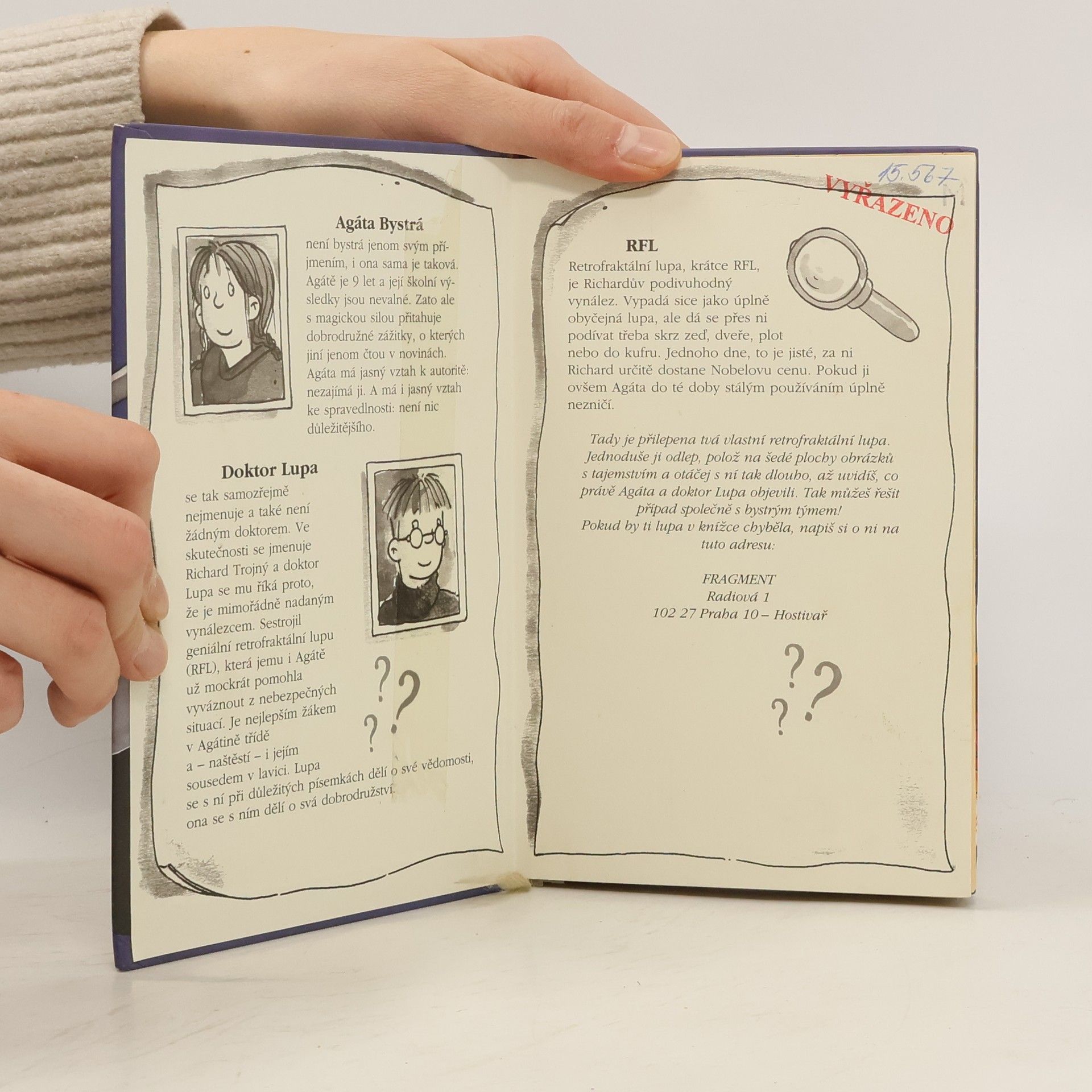 Agáta Bystrá a doktor Lupa opět v akci! Noční služba s dědečkem, který pracuje jako hlídač ve Věži, není žádná lahoda. Ztichlými chodbami se plíží maskované postavy a telefonické spojení s okolním světem je přerušeno. Naši hrdinové až příliš pozdě zjišťují, že zkřížili cestu bandě zlodějů. Pomoci jim můžeš i ty prostřednictvím své kouzelné lupy, která je součástí knihy!