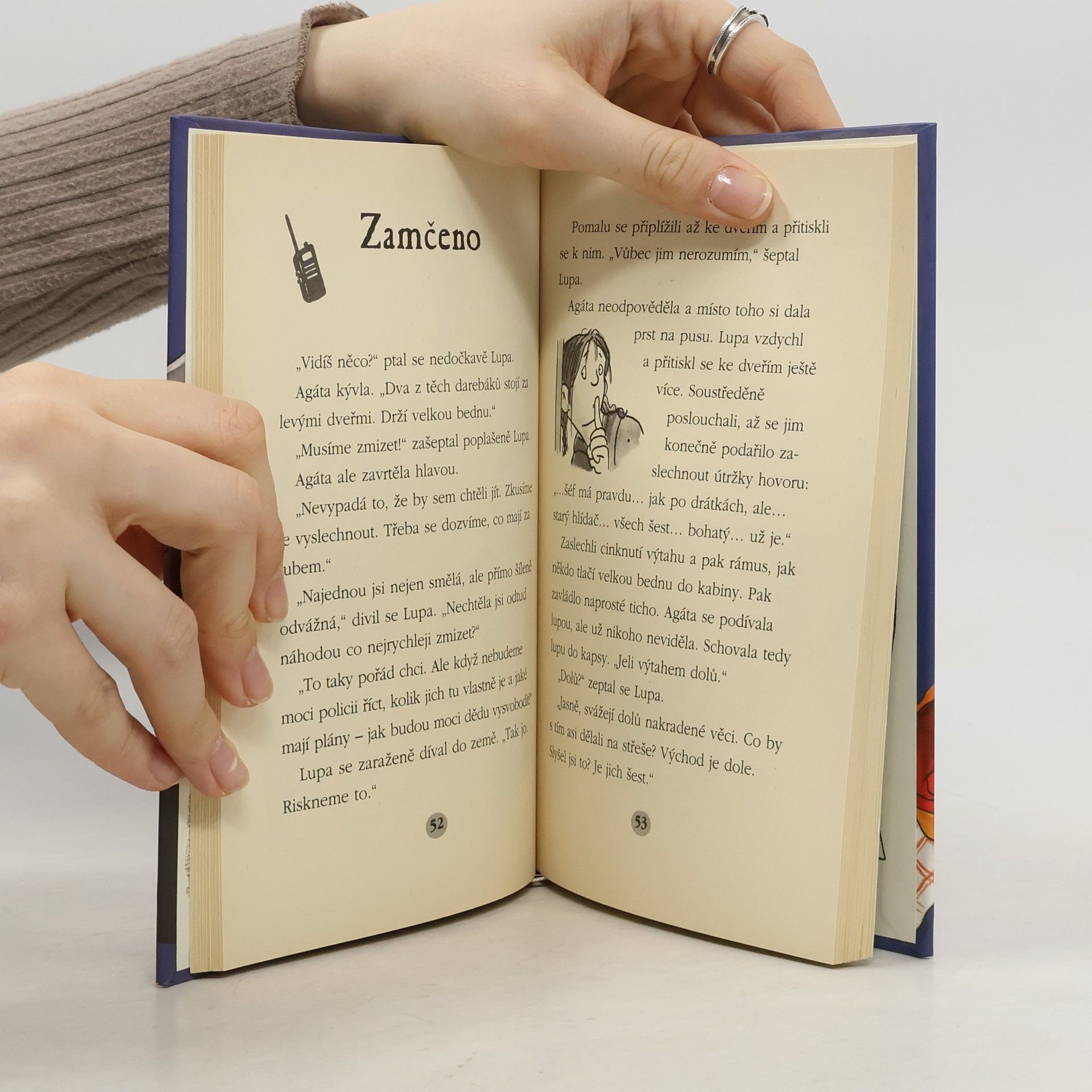 Agáta Bystrá a doktor Lupa opět v akci! Noční služba s dědečkem, který pracuje jako hlídač ve Věži, není žádná lahoda. Ztichlými chodbami se plíží maskované postavy a telefonické spojení s okolním světem je přerušeno. Naši hrdinové až příliš pozdě zjišťují, že zkřížili cestu bandě zlodějů. Pomoci jim můžeš i ty prostřednictvím své kouzelné lupy, která je součástí knihy!