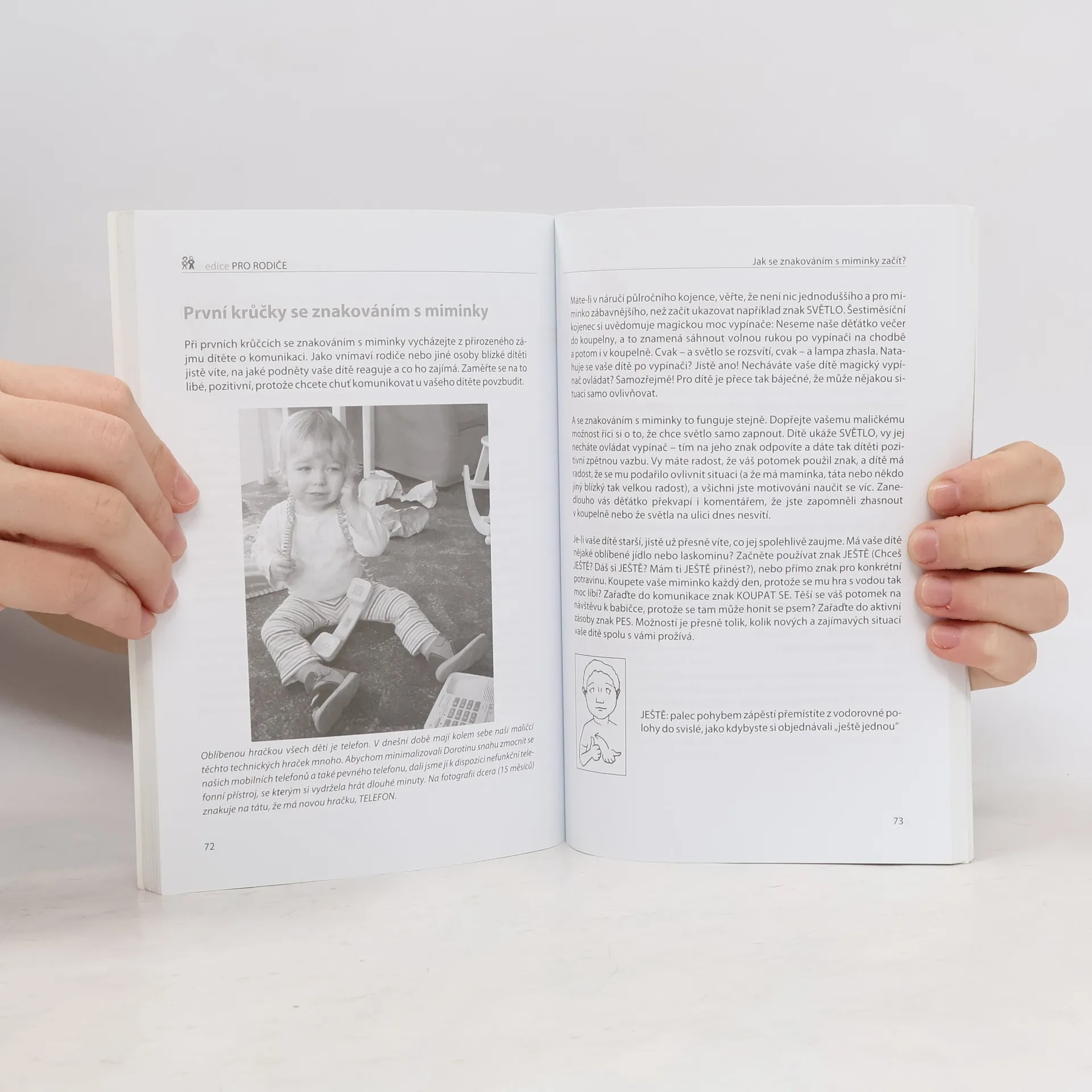 Podtitul: Komunikujeme přirozenými znaky a gesty Také někdy nevíte, proč se váš maličký vzteká, co vlastně chce či co ho rozplakalo? Účinnou cestou, jak mu porozumět, může být právě systém znakování s miminky. Nabídněte vašemu dítěti, které ještě neumí vůbec nebo dobře mluvit, možnost, jak se s vámi dorozumět. Kniha přináší srozumitelný návod k tomu, jak rozvíjet přirozenou komunikaci malých dětí gesty a znaky.Autorka klade velký důraz nejen na odborné informace, ale zejména na praktické zkušenosti využití ověřeného komunikačního systému gesty a znaky v každodenním životě s dítětem raného věku. Součástí publikace je i slovník základních znaků.... celý text