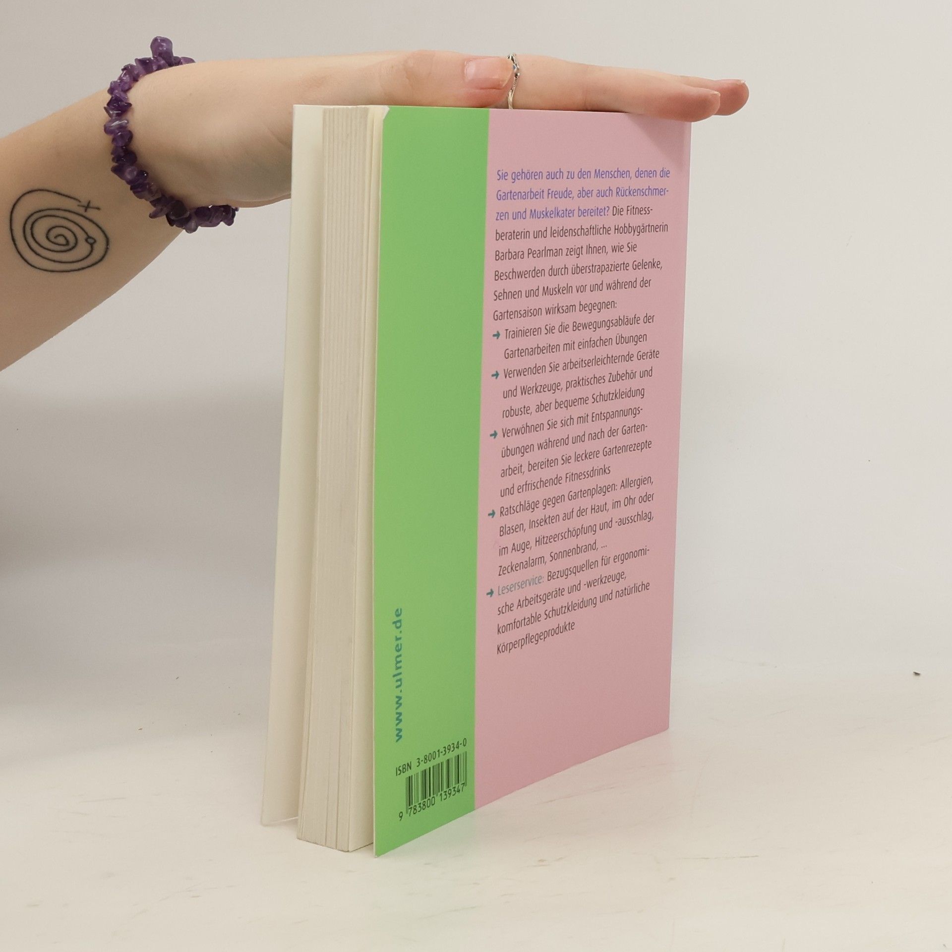 Sie gehören auch zu den Menschen, denen die Gartenarbeit Freude, aber auch Rückenschmer-zen und Muskelkater bereitet? Die Fitnessberaterin und leidenschaftliche Hobbygärtnerin Barbara Pearlman zeigt Ihnen, wie Sie Beschwerden durch überstrapazierte Gelenke, Sehnen und Muskeln vor und während der Gartensaison wirksam begegnen: Trainieren Sie die Bewegungsabläufe der Gartenarbeiten mit einfachen Übungen Verwenden Sie arbeitserleichternde Geräte und Werkzeuge, praktisches Zubehör und robuste, aber bequeme Schutzkleidung Verwöhnen Sie sich mit Entspannungsübungen während und nach der Garten- arbeit, bereiten Sie leckere Gartenrezepte und erfrischende Fitnessdrinks Ratschläge gegen Gartenplagen: Allergien, Blasen, Insekten auf der Haut, im Ohr oder im Auge, Hitzeerschöpfung und -ausschlag, Zeckenalarm, Sonnenbrand,. Leserservice: Bezugsquellen für ergonomische Arbeitsgeräte und -werkzeuge, komfortable Schutzkleidung und natürliche Körperpflegeprodukte.