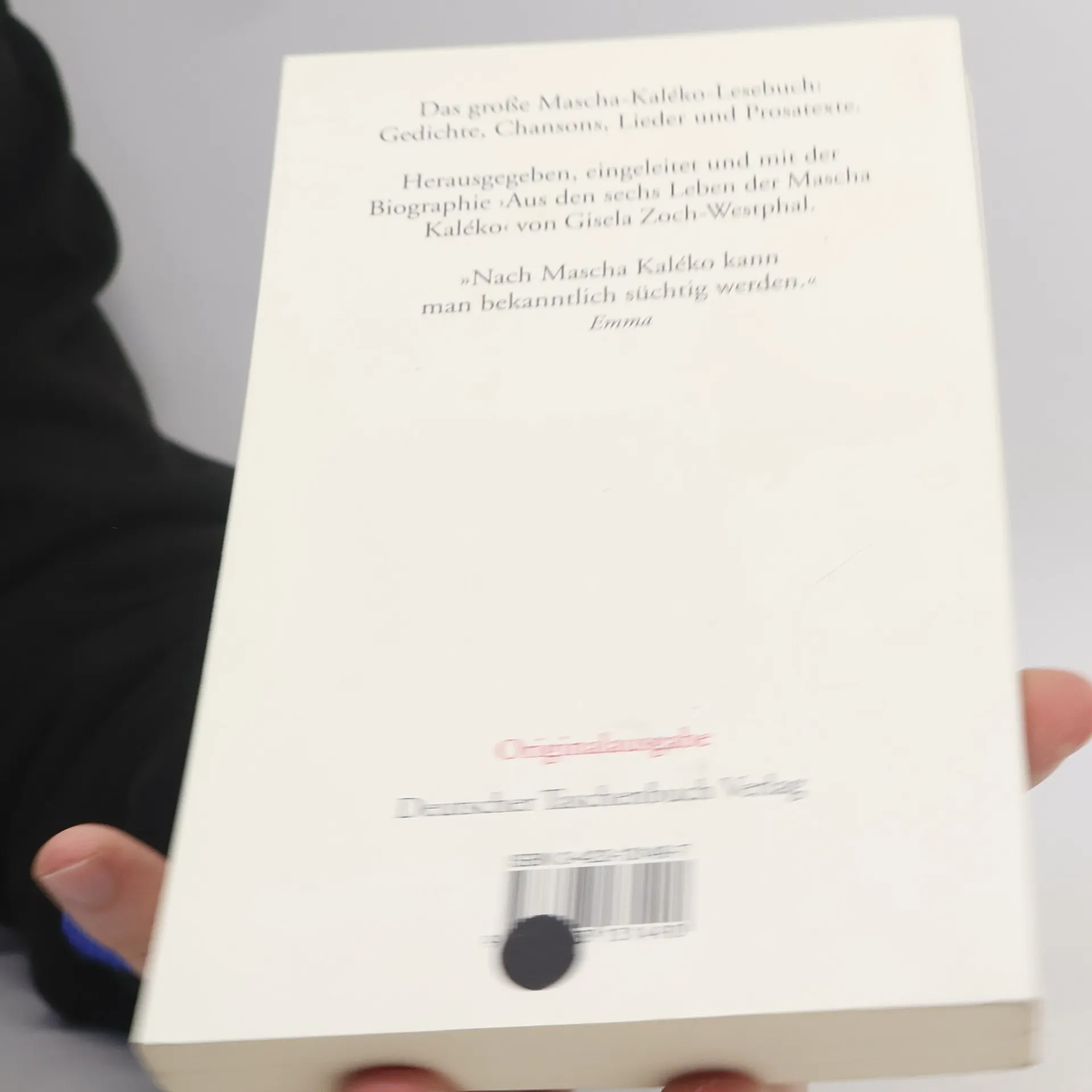 Das große Mascha-Kaléko-Lesebuch: Gedichte, Chansons, Lieder und Prosatexte. Herausgegeben und mit einer Biographie von Gisela Zoch-Westphal. Das vorliegende Mascha-Kaléko-Lesebuch enthält die Verse, Nonsens-Gedichte und Prosastücke aus den Bänden ›Heute ist morgen schon gestern‹, ›Ich bin von anno dazumal‹, ›Das himmelgraue Poesie-Album‹, ›Papagei und Mamagei‹ und ›Der Gott der kleinen Webefehler‹ sowie die Biographie ›Aus den sechs Leben der Mascha Kaléko‹ von Gisela Zoch-Westphal.