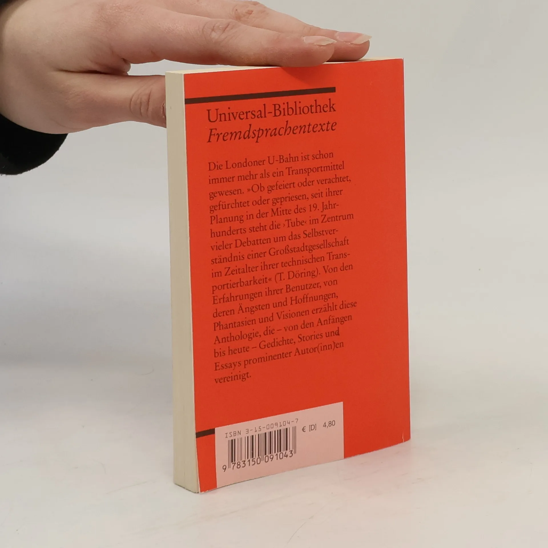 Die Londoner U-Bahn ist schon immer mehr als ein Transportmittel gewesen: »Ob gefeiert oder verachtet, gefürchtet oder gepriesen, seit ihrer Planung in der Mitte des 19. Jahrhunderts steht die ›Tube‹ im Zentrum vieler Debatten um das Selbstverständnis einer Großstadtgesellschaft im Zeitalter ihrer technischen Transportierbarkeit« (T. Döring). Von den Erfahrungen ihrer Benutzer, von deren Ängsten und Hoffnungen, Phantasien und Visionen erzählt diese Anthologie, die – von den Anfängen bis heute – Gedichte, Stories und Essays prominenter Autorinnen und Autoren vereinigt. Texte in der Originalsprache, mit Übersetzungen schwieriger Wörter am Fuß jeder Seite, Nachwort und Literaturhinweisen. Sprachen: Deutsch, Englisch