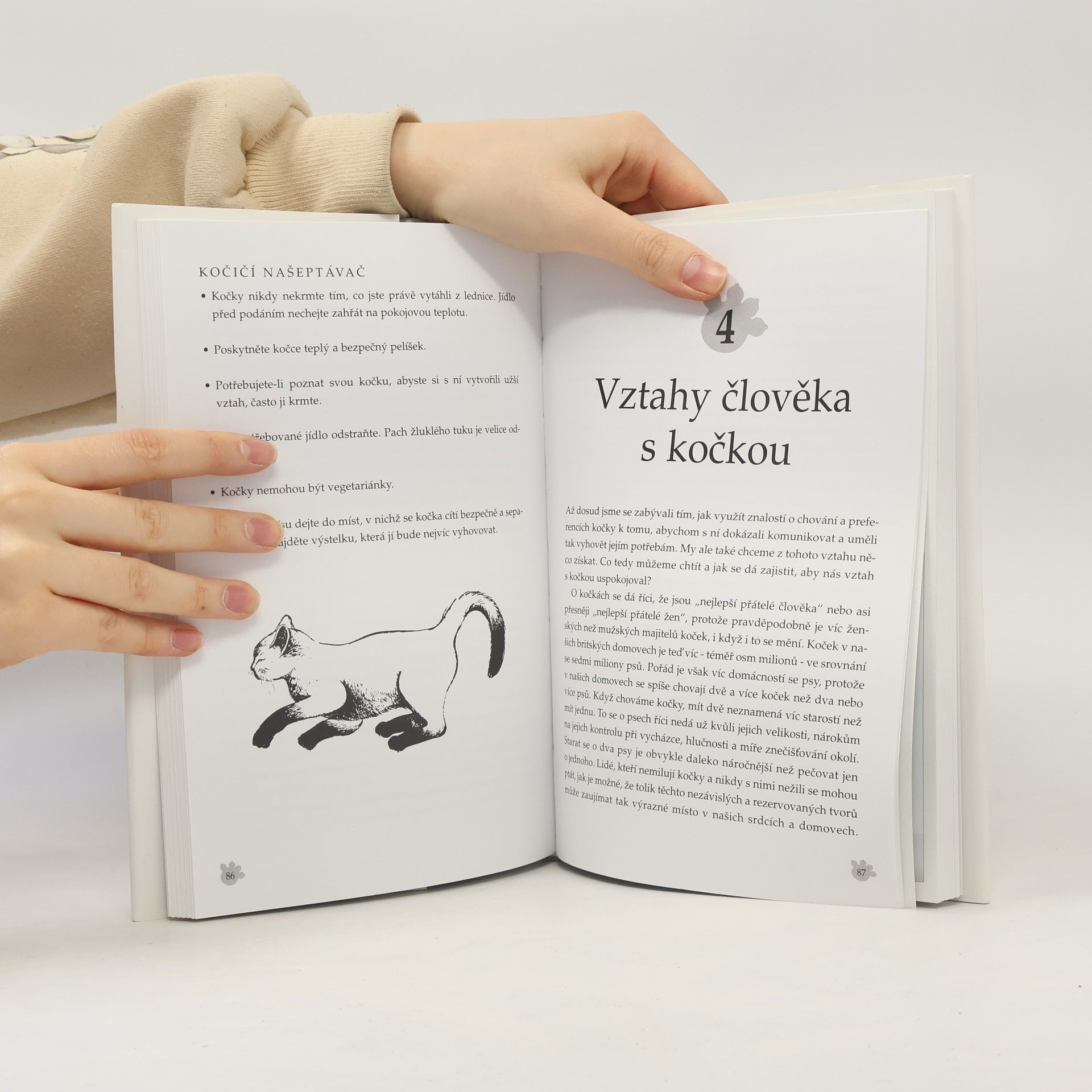 Pokud se chcete dozvědět něco o povaze koček, příčinách a souvislostech jejich chování, pak je tohle pro vás ta správná četba. Po přečtení kapitol: Jiný svět, Kočičí řeč, Soužití s kočkou, Vztahy člověka s kočkou, Kočičí povahy, Inteligence a výcvik koček, Problémy a jak se s nimi vypořádat, budete o svojí kočce vědět mnohem víc a pochopíte proč dělá to co dělá.