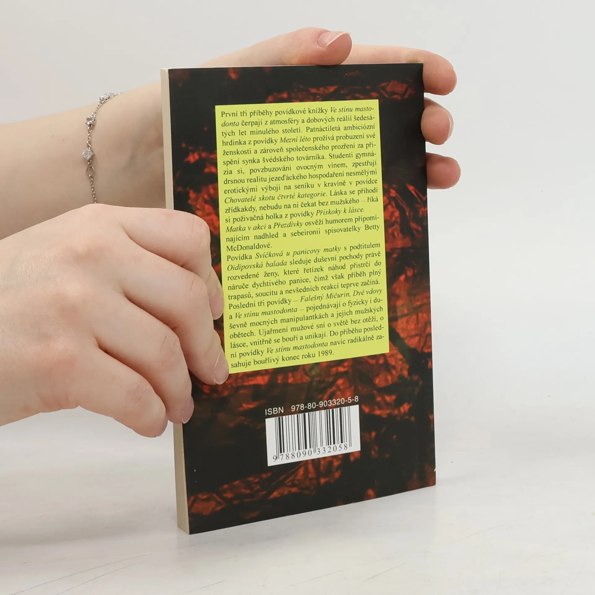 Kniha povídek autorky bestselleru "Bereme, co je". První tři příběhy povídkové knížky Ve stínu mastodonta čerpají z atmosféry a dobových reálií šedesátých let minulého století. Patnáctiletá ambiciózní hrdinka z povídky Mezní léto prožívá probuzení své ženskosti a zároveň společenského prozření za přispění synka švédského továrníka. Studenti gymnázia si, povzbuzováni ovocným vínem, zpestřují drsnou realitu jezeďáckého hospodaření nesmělými erotickými výboji na seníku v kravíně v povídce Chovatelé skotu čtvrté kategorie. Láska se přihodí zřídkakdy, nebudu na ni čekat bez mužského — říká si poživačná holka z povídky Přískoky k lásce. Matka v akci a Přezdívky osvěží humorem připomínajícím nadhled a sebeironii spisovatelky Betty McDonaldové. Povídka Svíčková u panicovy matky s podtitulem Oidipovská balada sleduje duševní pochody právě rozvedené ženy, které řetízek náhod přistrčí do náruče dychtivého panice, čímž však příběh plný trapasů, soucitu a nevšedních reakcí teprve začíná. Poslední tři povídky — Falešný Mičurin, Dvě vdovy a Ve stínu mastodonta — pojednávají o fyzicky i duševně mocných manipulantkách a jejich mužských obětech. Ujařmení mužové sní o světě bez otěží, o lásce, vnitřně se bouří a unikají. Do příběhu poslední povídky Ve stínu mastodonta navíc radikálně zasahuje bouřlivý konec roku 1989.