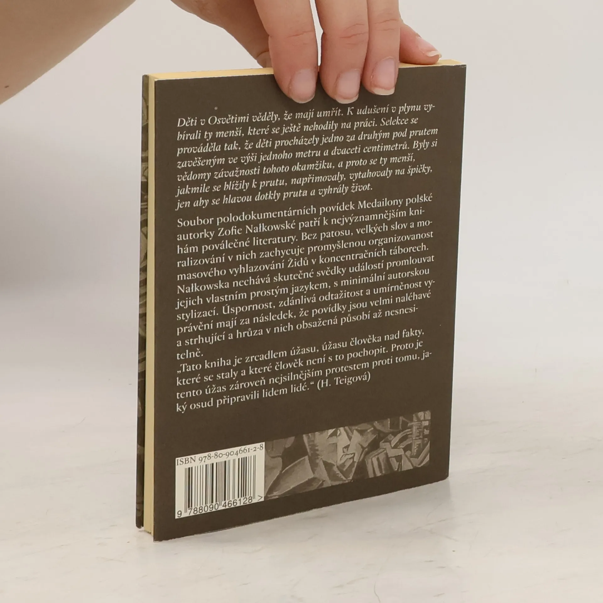 Soubor osmi krátkých povídek slavné polské spisovatelky Zofie Nałkovské je jednou z nejpůsobivějších knih poválečné literatury. Polodokumentární formou, prostě a pravdivě ukazuje na příbězích obyčejných lidí proces vyhlazování Židů v koncentračních táborech v Polsku. Autorka vychází ze svědectví, jež vyslechla jako členka Komise pro vyšetřování nacistických zločinů od přeživších obětí. Na malém prostoru, bez patosu a moralizování, zachycuje zrůdnost fašismu a promyšlenost jeho metod sloužících k degradaci a likvidaci člověka. Povídky jsou přes svou úspornost a zdánlivou odtažitost velmi naléhavé a strhující. Vysokou mírou autenticity a věcným charakterem se blíží literatuře faktu, přesto je však zároveň každá z nich malým literárním skvostem. Ve čtenáři zanechávají smutný úžas nad tím, že „takový osud připravili lidem lidé“.
