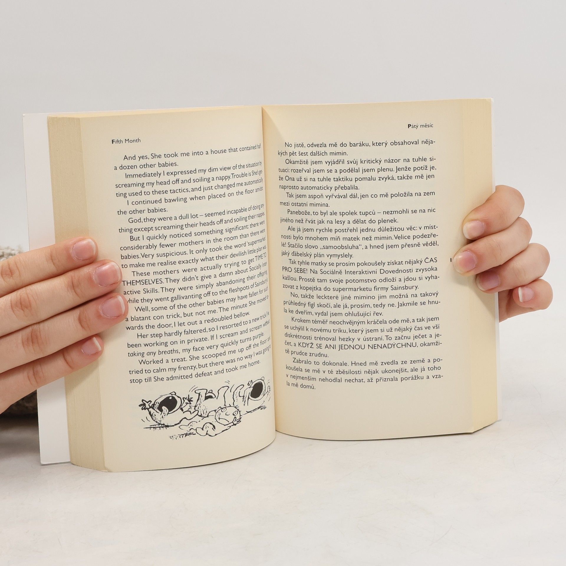 První díl bilingvního, anglicko-českého vydání úspěšné humorné série líčí rodičovské trampoty a život rodiny z pohledu novorozence. Úsměvná kniha otevře oči všem bláhovcům, kteří považují miminka za roztomilá a bezbranná. Teprve díky ní pochopíte, že každé dítě je od narození především prevít a že je potřeba být neustále ve střehu a nepodléhat jeho lstivě roztomilým úsměvům.