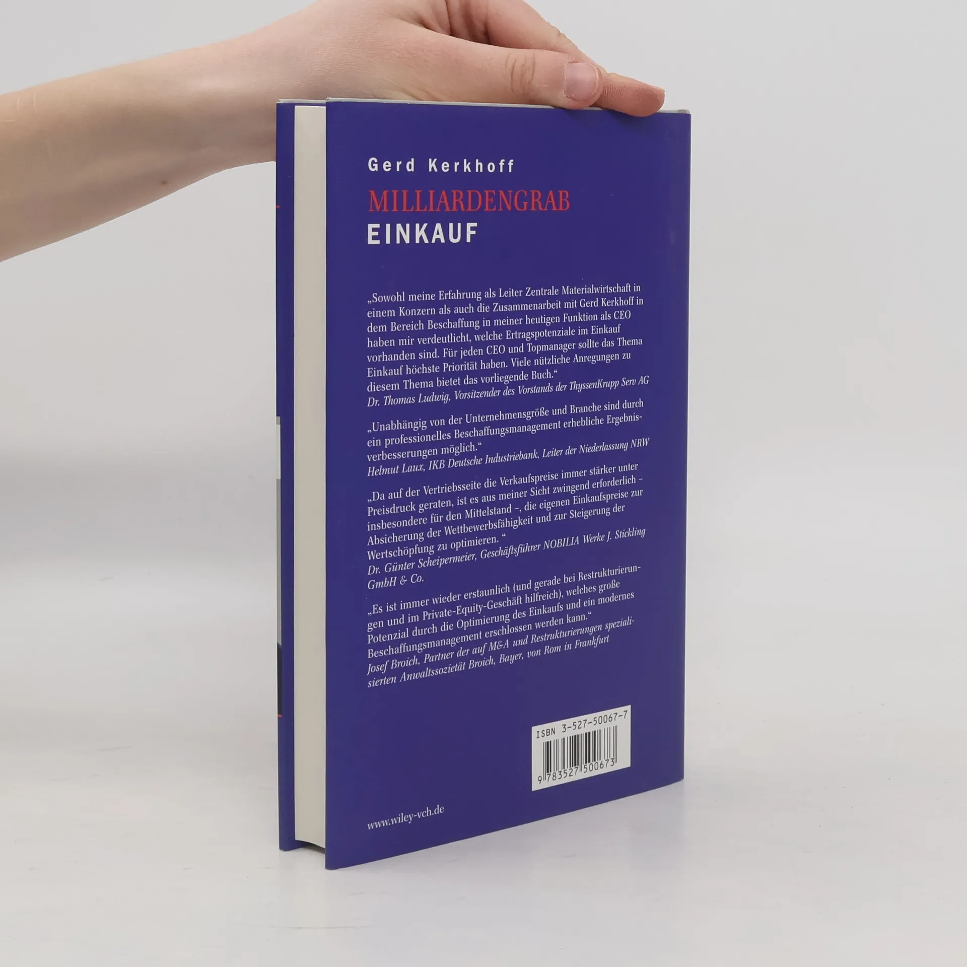 Kerkhoff zeigt auf leicht verständliche und unterhaltende Weise, wie Unternehmen gewaltige Einsparpotenziale im Einkauf identifizieren und realisieren können. Dabei geht es ihm nicht um „Preisdrückerei um jeden Preis“.