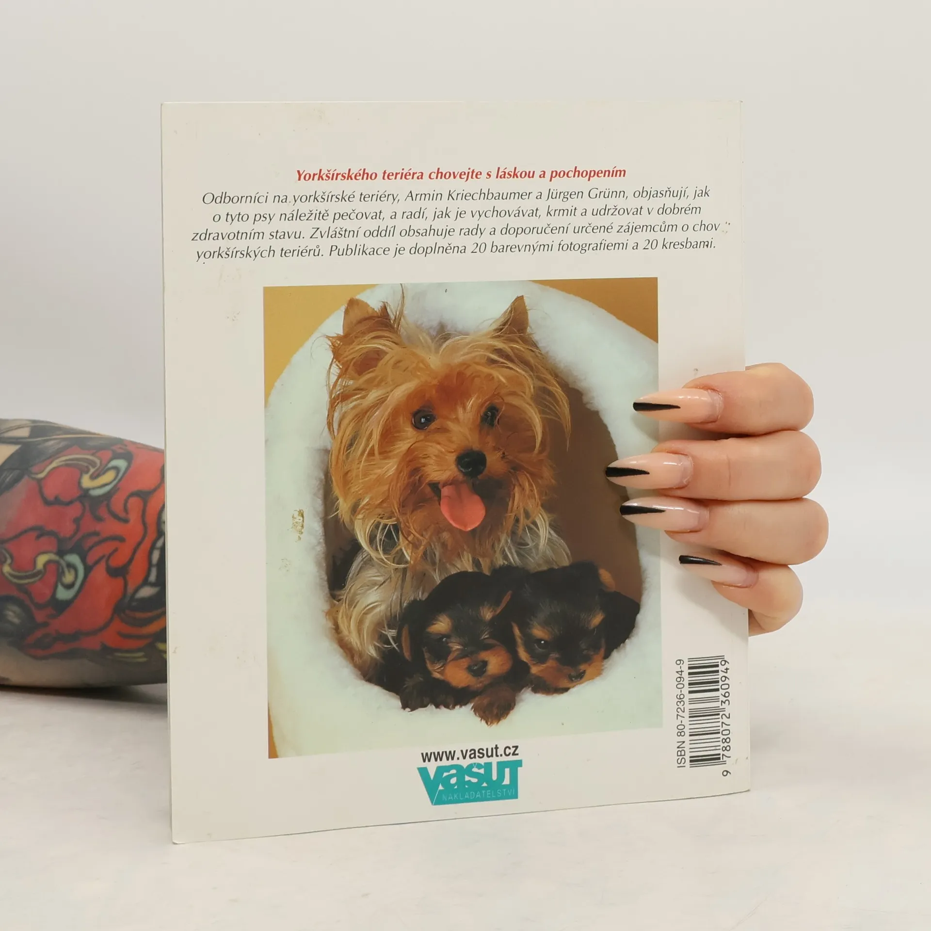 Odborníci na yorkšírské teriéry, Armin Kriechbauer a Jürgen Grünn, objasňují, jak o tyto psy náležitě pečovat, a radí, jak je vychovávat, krmit a udržovat v dobrém zdravotním stavu. Zvláštní oddíl obsahuje rady a doporučení určené zájemcům o chov yorkšírských teriérů. Publikace je doplněna 20 barevnými foografiemi a 20 kresbami.