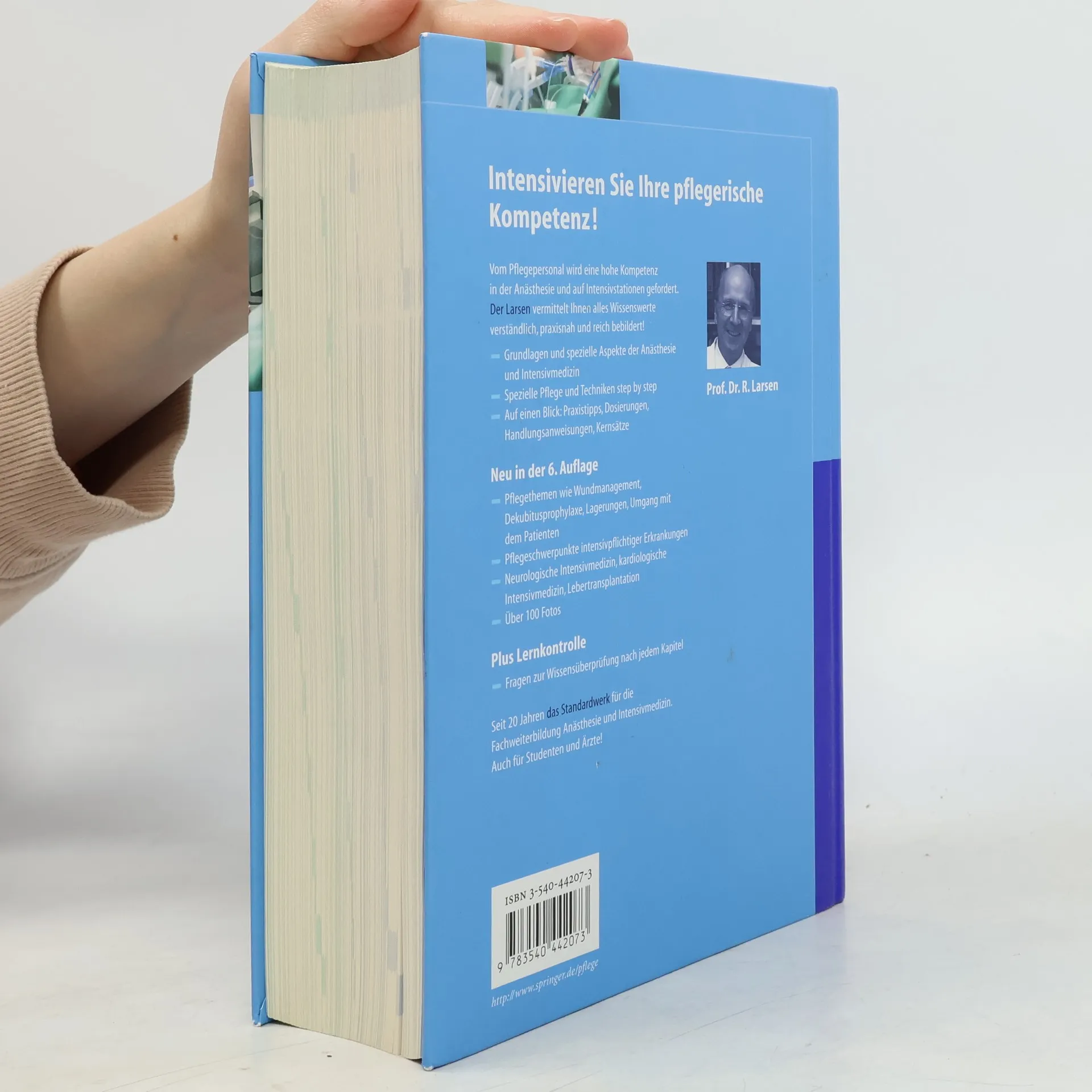 ber 100 000 verkaufte Exemplare. Das Standardwerk im Original fr die Fachweiterbildung in der Ansthesie und Intensivpflege nun in der 6. Auflage komplett berarbeitet und erweitert! Neu in der 6. Auflage: - Pflegeschwerpunkte u.a. von Fachpflegepersonal ergnzt: z.B. Wundmanagement, Dekubitusprophylaxe, Lagerungsaspekte, Patientenanamnese, spezielle Pflege intensivpflichtiger Erkrankungen - Erweiterung der Kapitel Neuro-Intensiv, kardiologische Intensivmedizin, Lebertransplantation - Zahlreiche vierfarbige Fotos - nach jedem Kapitel Fragen zur Wissensberprfung. Die verstndliche Sprache des Autors vermittelt dem Leser alle notwendigen Grundlagen der Ansthesie und Intensivmedizin praxisnah und anschaulich. "Der Larsen": das unverzichtbare Standardwerk fr Pflegende, Fachweiterbildungsteilnehmer sowie rzte in der Ansthesie und Intensivmedizin. Von der DGF (Deutsche Gesellschaft fr Fachkrankenpflege und Funktionsdienste) empfohlen.
