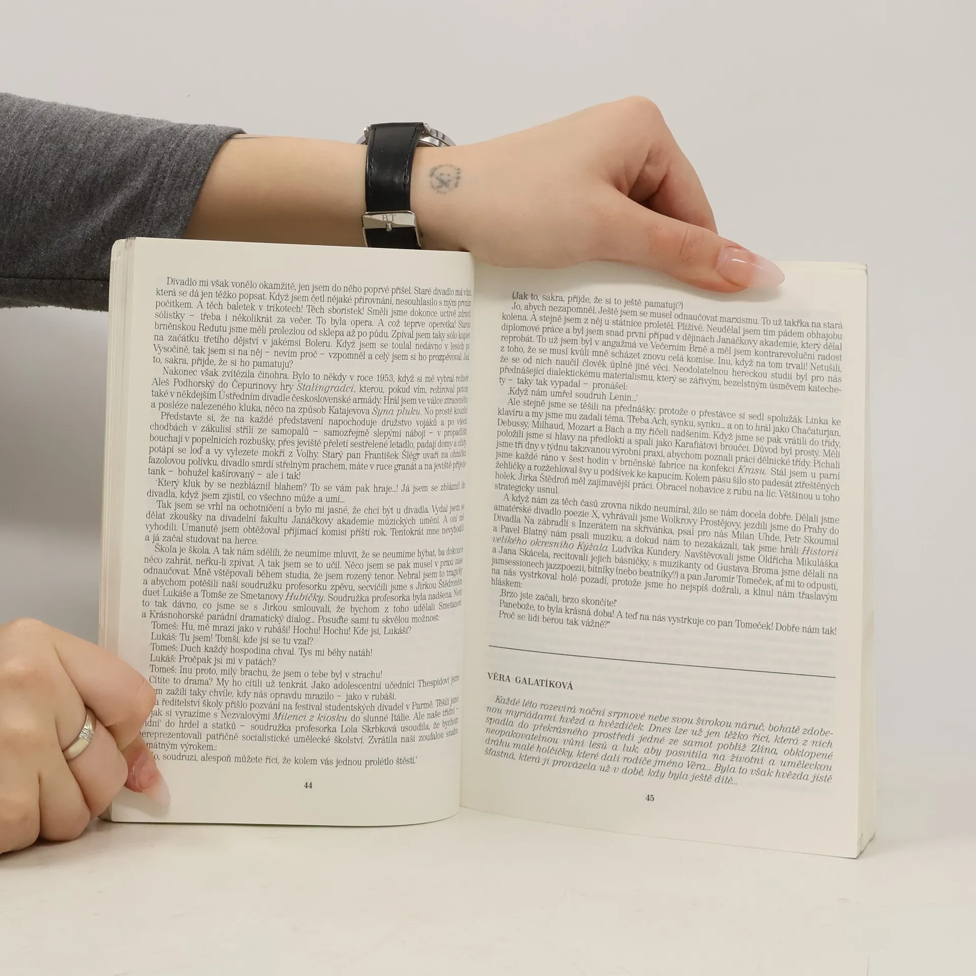 Kniha je rozdělena do dvou částí. Výrazně větší část knihy je věnována vzpomínkám herců na jejich počátky, druhá část je věnována sbírce humorných příhod.