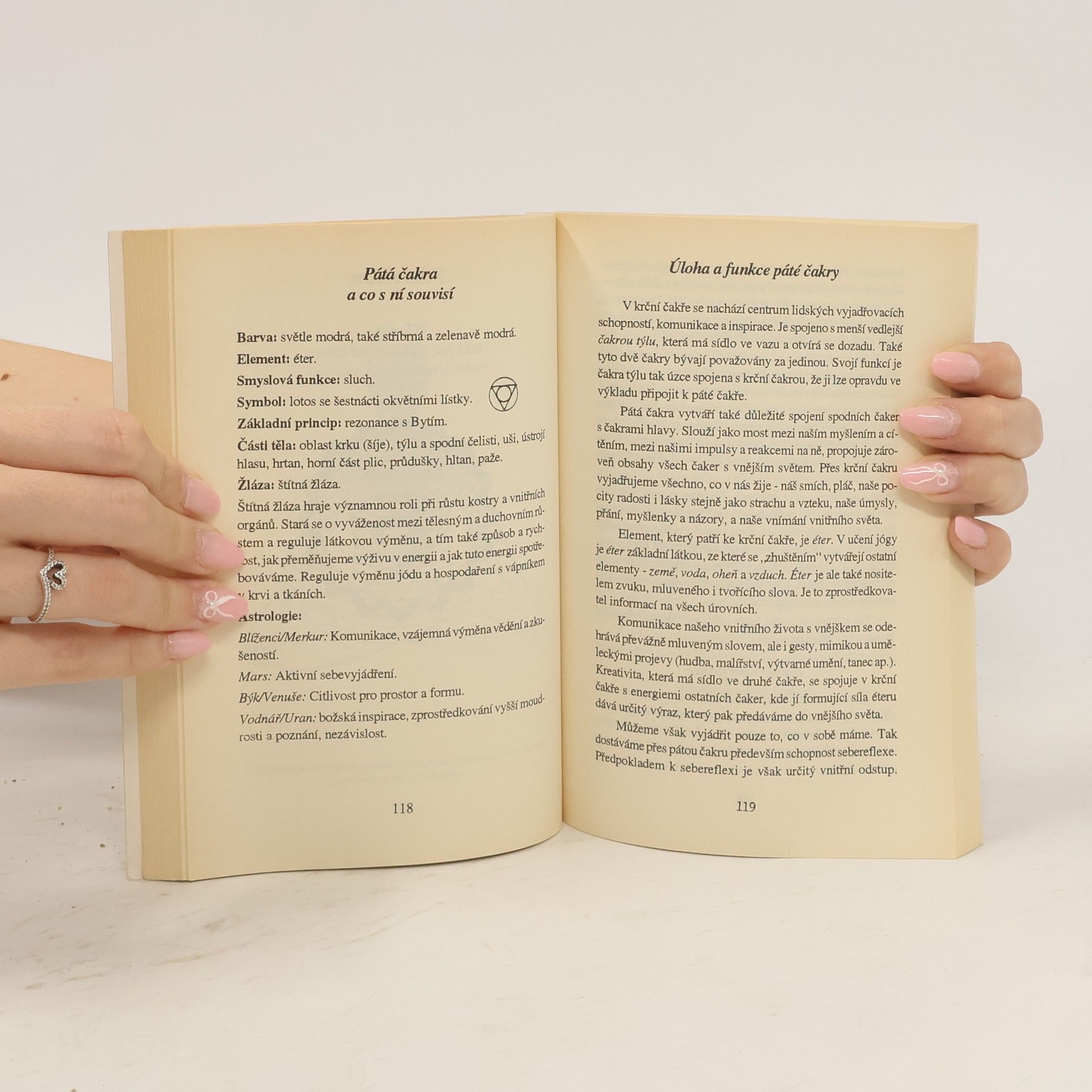 Poznávání energetických center neboli čaker otvírá pohled na působení jemných sil na lidský organismus. Tato kniha názorným a srozumitelným způsobem popisuje funkce a vliv těchto energetických center. Pro praktickou práci s čakrami zde autoři nabízejí celou škálu možností: použití tónů, barev, krystalů a vůní s jejich specifickým účinkem, doplněné meditačními a dechovými cvičeními, masážemi reflexních bodů jednotlivých čaker na chodidlech a přenosem univerzální životní energie. Popisy prožitků přírody, různých druhů jógy a astrologické přiřazení jednotlivých čaker obohacující navíc toto téma zajímavými a inspirativními poznatky.... celý text