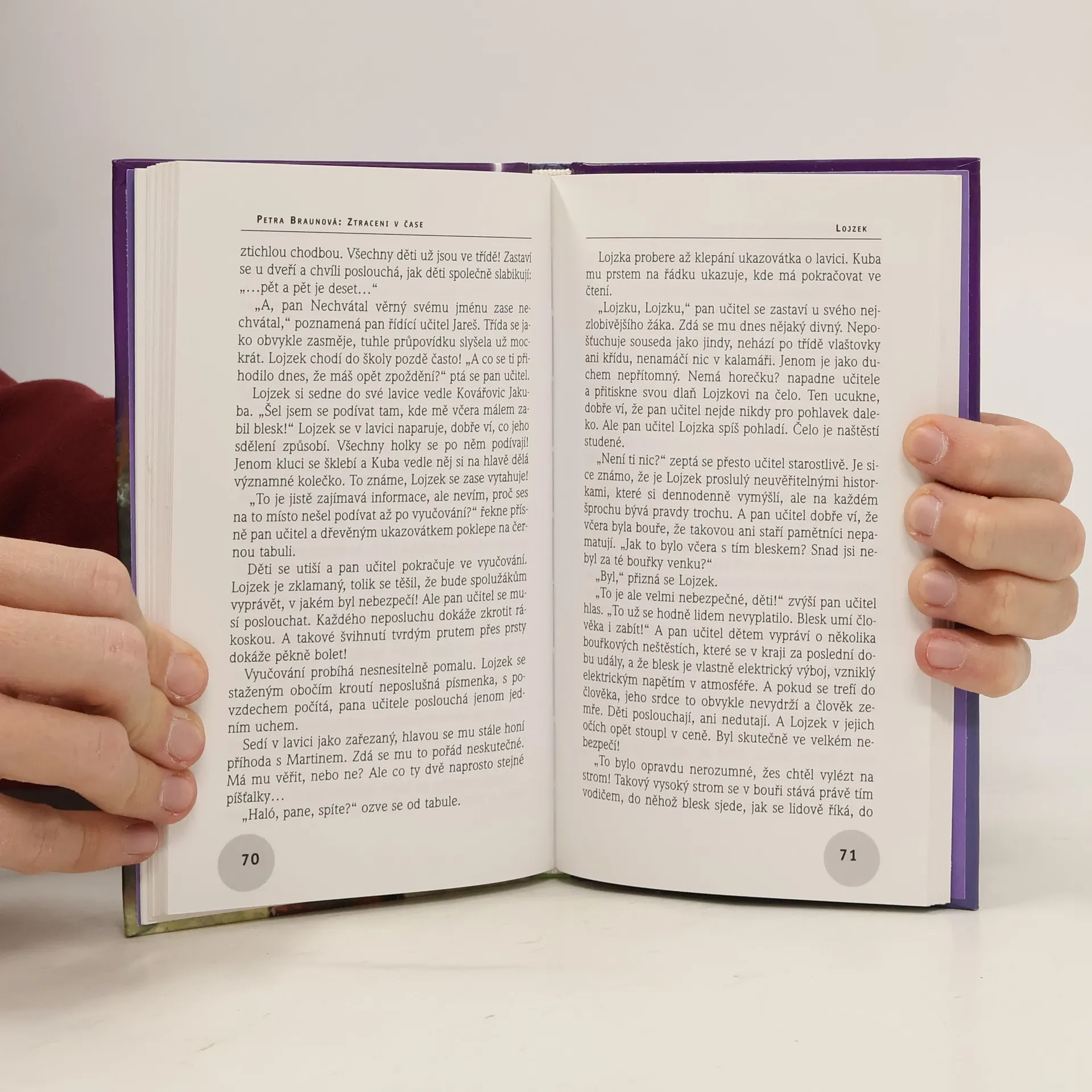 Jedenáctiletý Martin tráví léto u babičky na vsi. Kdyby nedostal tu prokletou dvojku z chování, mohl už být u moře! Teď je na venkově, kde je pár chalup a jinak nic. Ještěže umí babička tak pěkně vyprávět! Martin vydrží donekonečna poslouchat o jejím malém bratrovi, který byl stejný rošťák jako on a kterého v Martinově věku zabil blesk. Jednoho dne se Martin vypraví do sousední vesnice a uprostřed cesty ho zastihne strašlivá bouře. Hromy burácí, na zčernalé obloze se klikatí blesky, když tu najednou tmu rozčísne ohromný záblesk doprovázený podivným fialovým zářením. Náhle všechno ztichne – jen po louce běží k vysokému stromu osamělý chlapec. Martin ho v běsnění živlů zachrání a posléze zjistí, že je to Lojzek, babiččin zemřelý bratr. Co se stalo, kde se to Martin octl? A kdo se vlastně ztratil v čase?