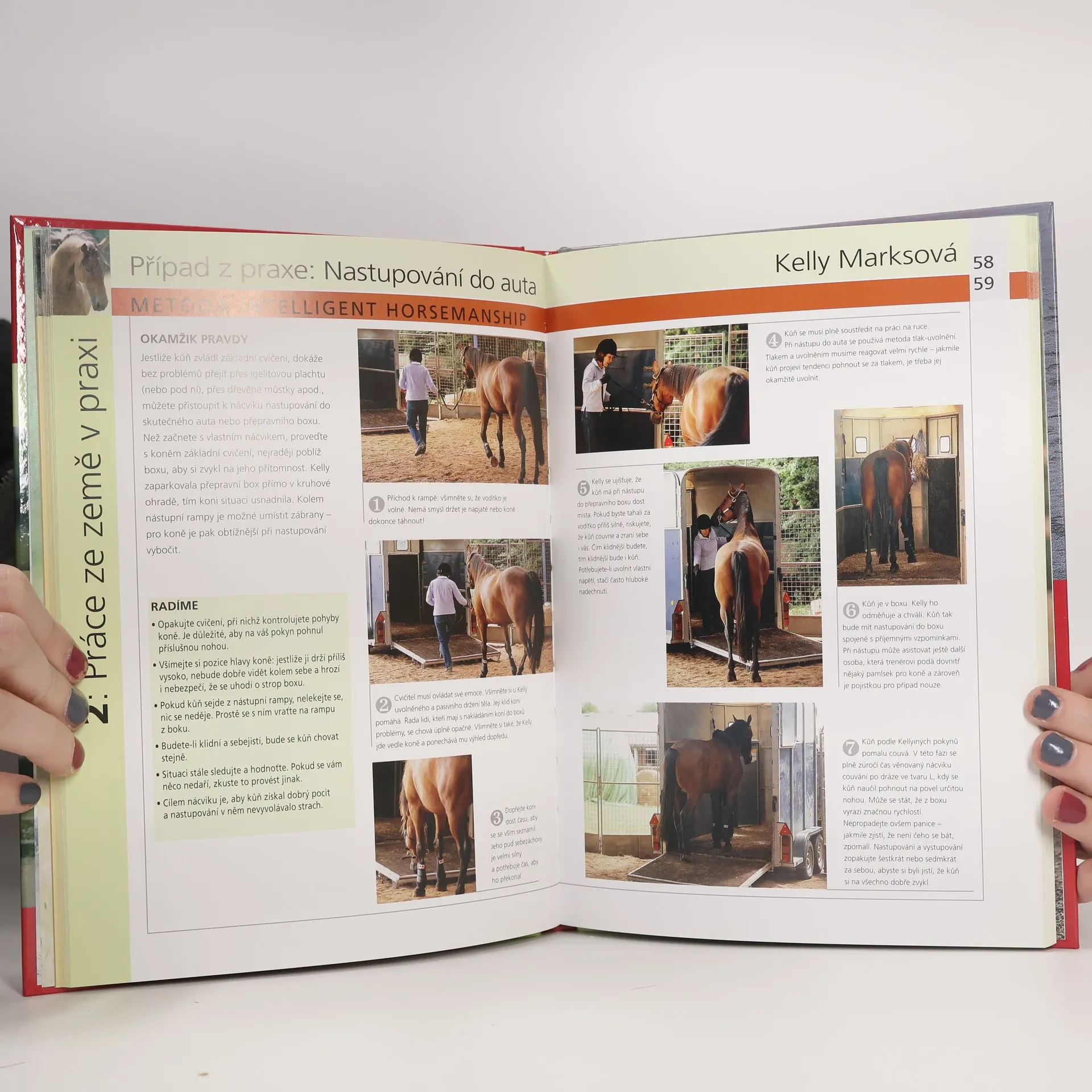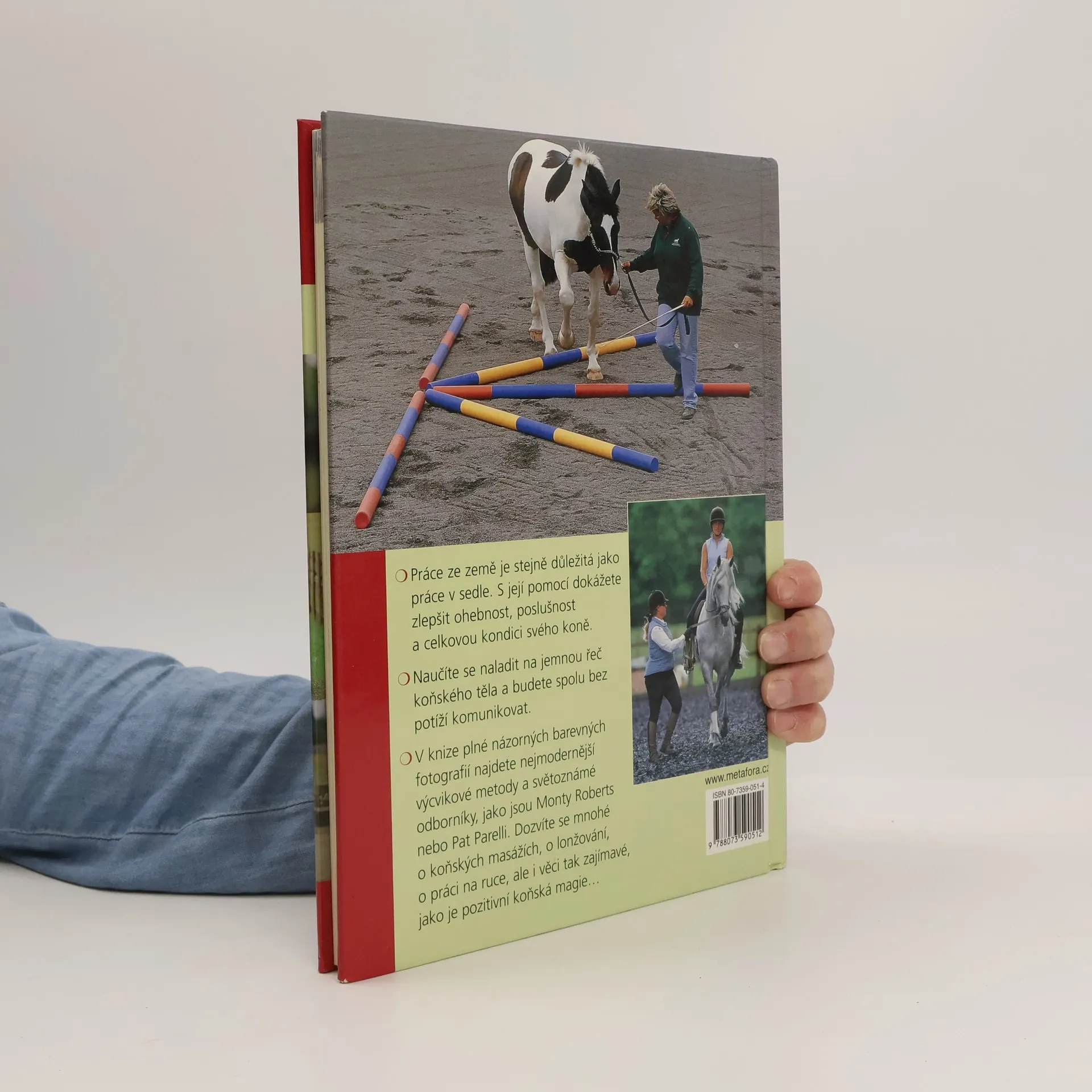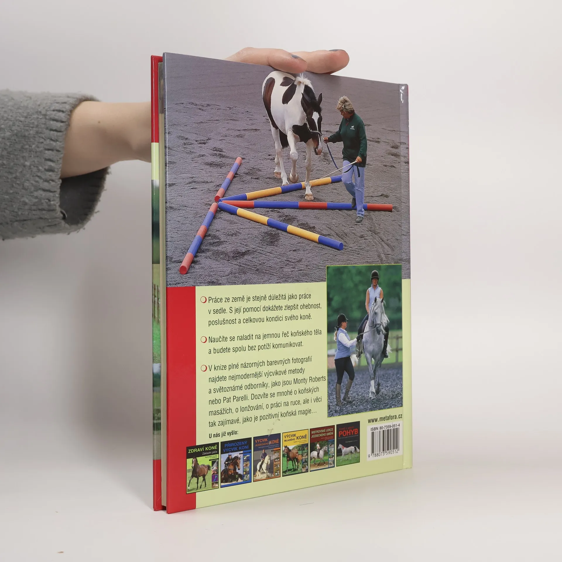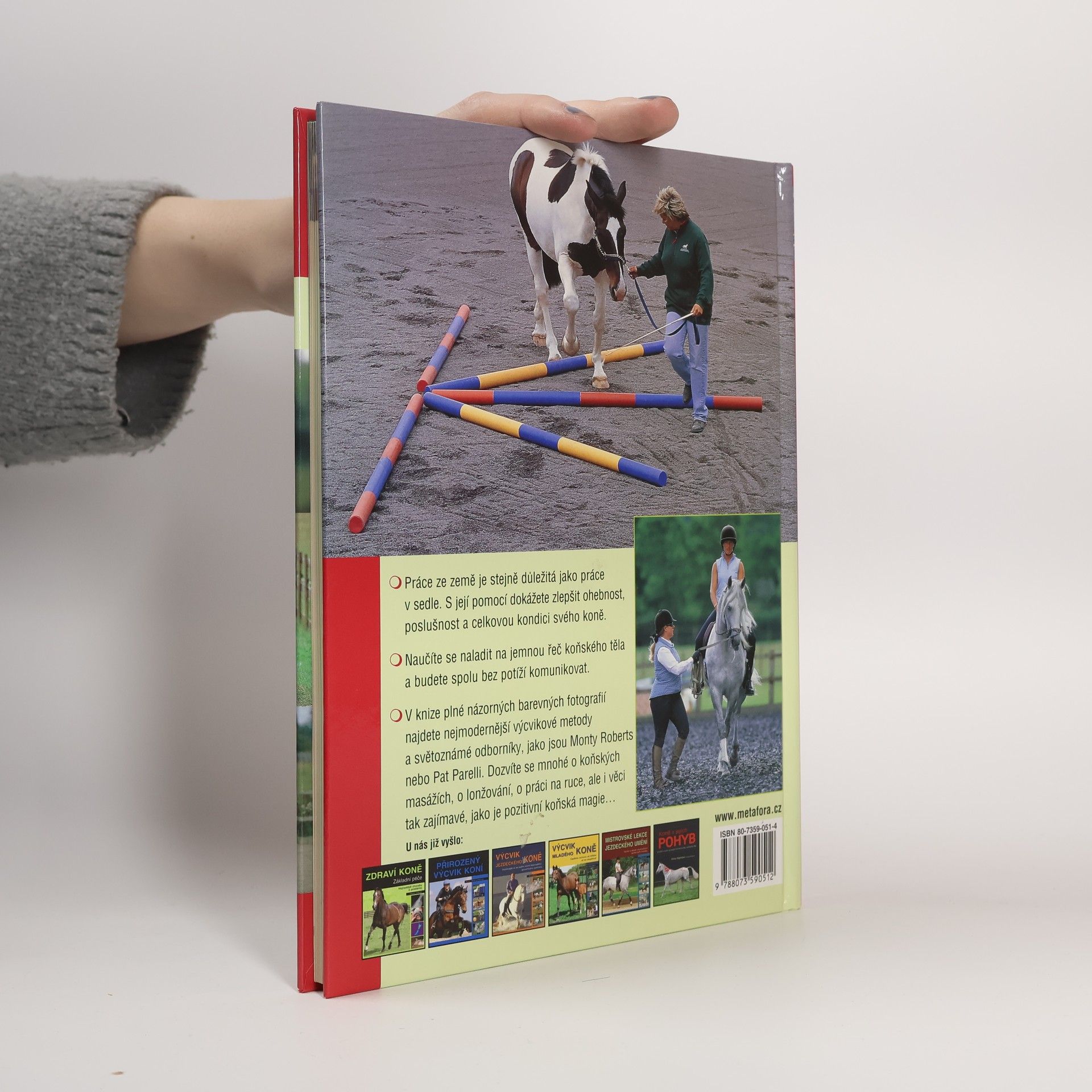 Přehled nejmodernějších výcvikových metod, cvičitelů a "škol", který milovníkům koní pomůže lépe poznat, ale hlavně efektivněji trénovat své svěřence. Na koních se zdaleka jen nejezdí, přestože mnozí laikové si to představují. Aby se z koně stal rozumný, příjemný a bezpečný partner, je třeba věnovat se i takzvané práci ze země. Ta je totiž stejně důležitá jako práce v sedle. S její pomocí dokážete zlepšit ohebnost, poslušnost a celkovou kondici svého koně, prospět jeho zdraví a mentálnímu i fyzickému rozvoji.Naučíte se naladit na jemnou řeč koňského těla a budete spolu bez potíží komunikovat. V knize plné názorných barevných fotografií najdete nejmodernější výcvikové metody a světoznámé odborníky, jako jsou Monty Roberts nebo Pat Parelli. Dozvíte se mnohé o koňských masážích, o lonžování, o práci na ruce, ale i věci tak zajímavé, jako je pozitivní koňská magie.