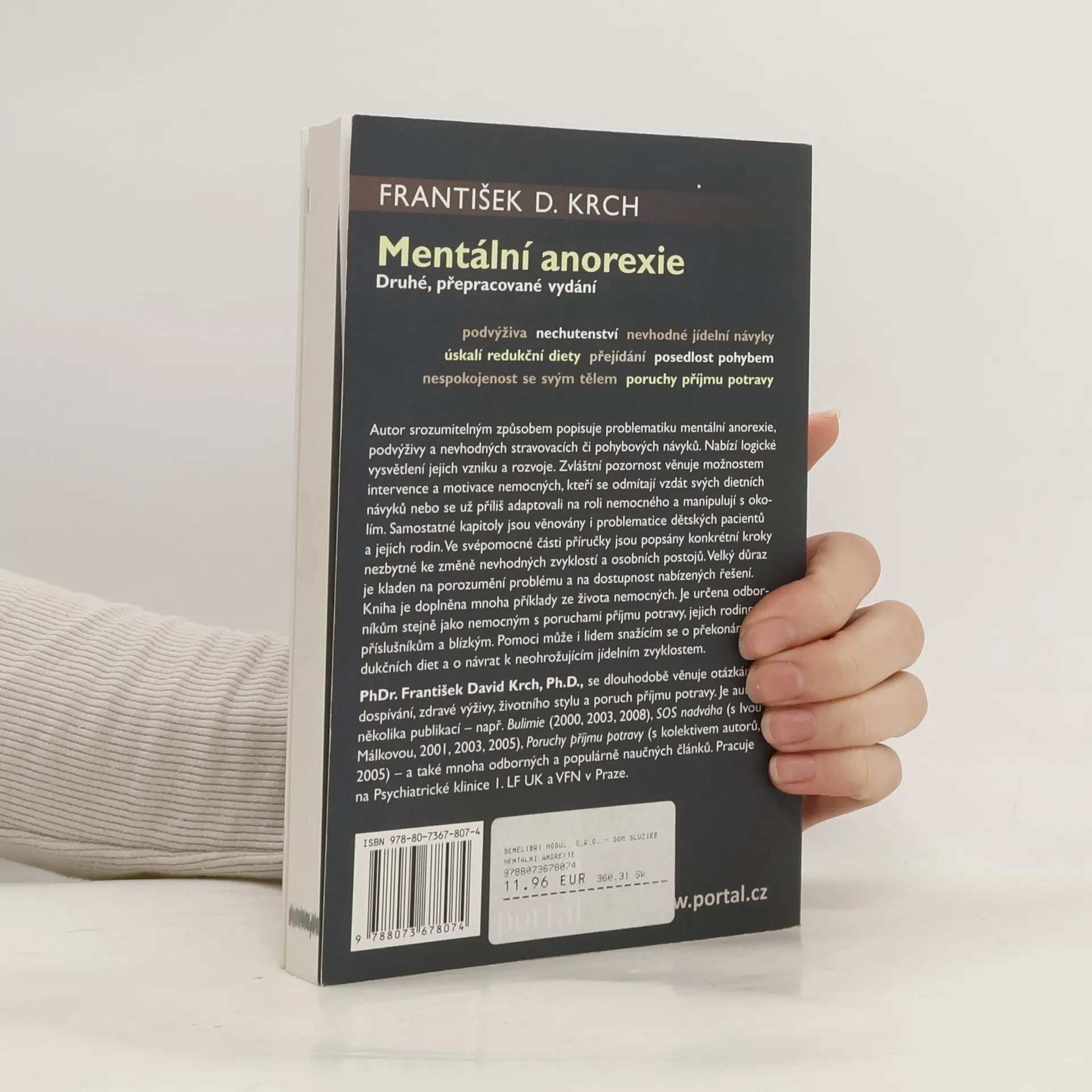 Druhé, přepracované vydání Mentální anorexie, nechutenství, nevhodné jídelní návyky, nadměrný strach z tloušťky, přejídání a nespokojenost se svým tělem, to jsou témata publikace odborníka, který se již mnoho let zabývá výzkumem a léčbou poruch příjmu potravy. V úvodu knihy autor popisuje problematiku anorexie, podvýživy a úzkostné sebekontroly. Zvláštní pozornost věnuje možnostem intervence a motivace nemocných, kteří se odmítají vzdát svých dietních návyků, nebo se už příliš adaptovali na roli nemocného a zvykli si manipulovat se svým okolím. Samostatná kapitola je věnována problematice dětských pacientů. Ve svépomocné části příručky jsou popsány konkrétní kroky nezbytné nejenom ke změně jídelních a pohybových zvyklostí, ale i relevantních postojů. Velký důraz je kladen na porozumění problému a dostupnost nabízených řešení.