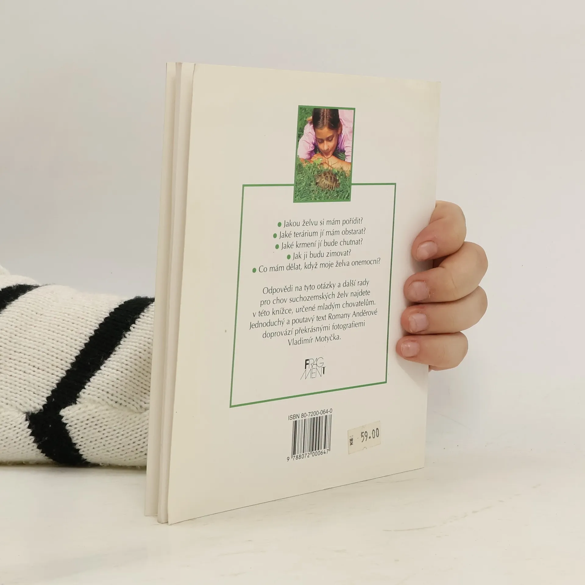 Praktická příručka pro mladé chovatele. Zabývá se podrobně chovem suchozemských želv způsobem přístupným i malým dětem, které většinou dostanou malého kamaráda na starost. Doprovázeno množstvím fotografií.
