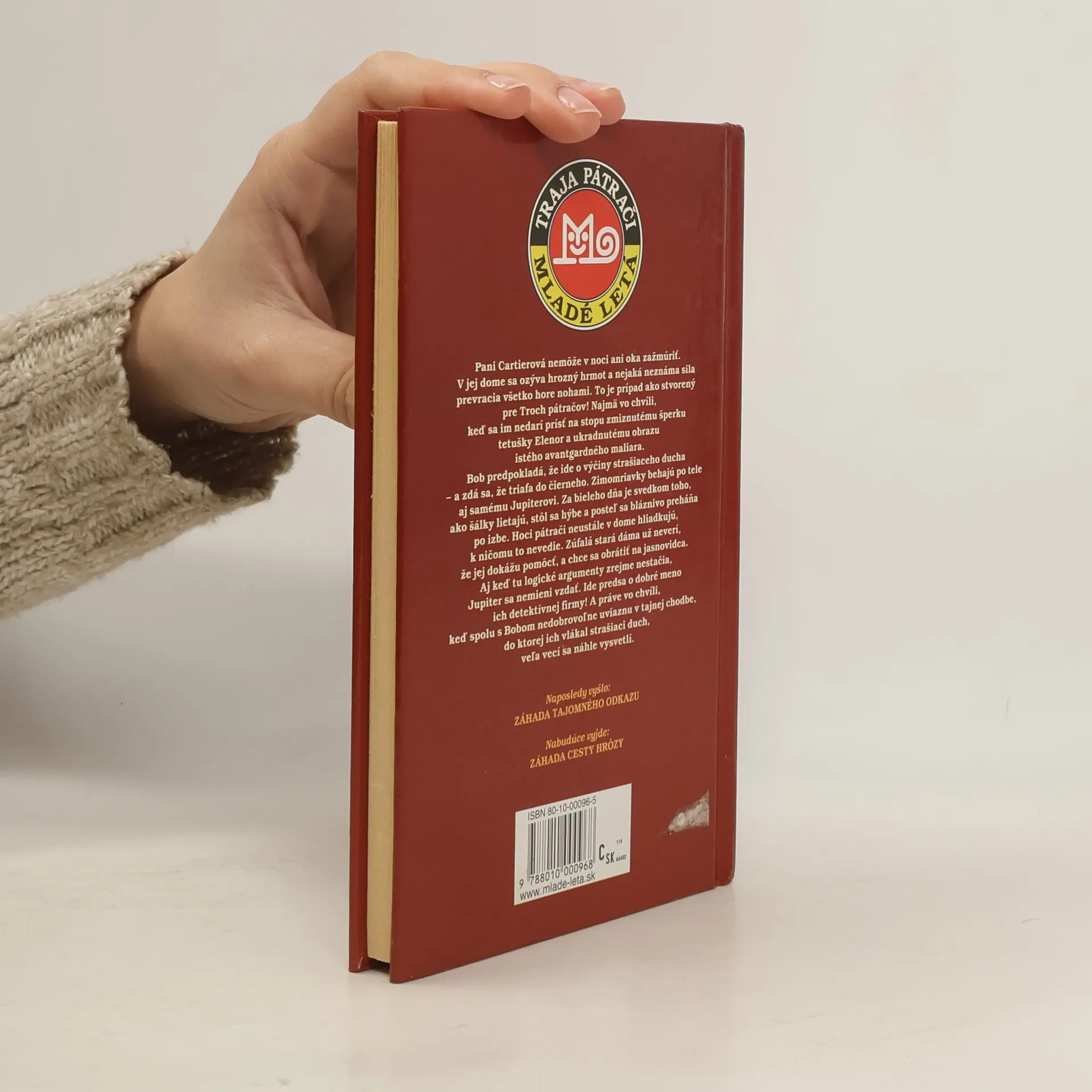 Pani Cartierová nemôže v noci ani oka zažmúriť. V jej dome sa ozýva hrozný hrmot a nejaká neznáma sila prevracia všetko hore nohami. To je prípad ako stvorený pre Troch pátračov! Najmä vo chvíli, keď sa im nedarí prísť na stopu zmiznutého šperku tetušky Eleanor a ukradnutému obrazu istého avantgardného maliara.