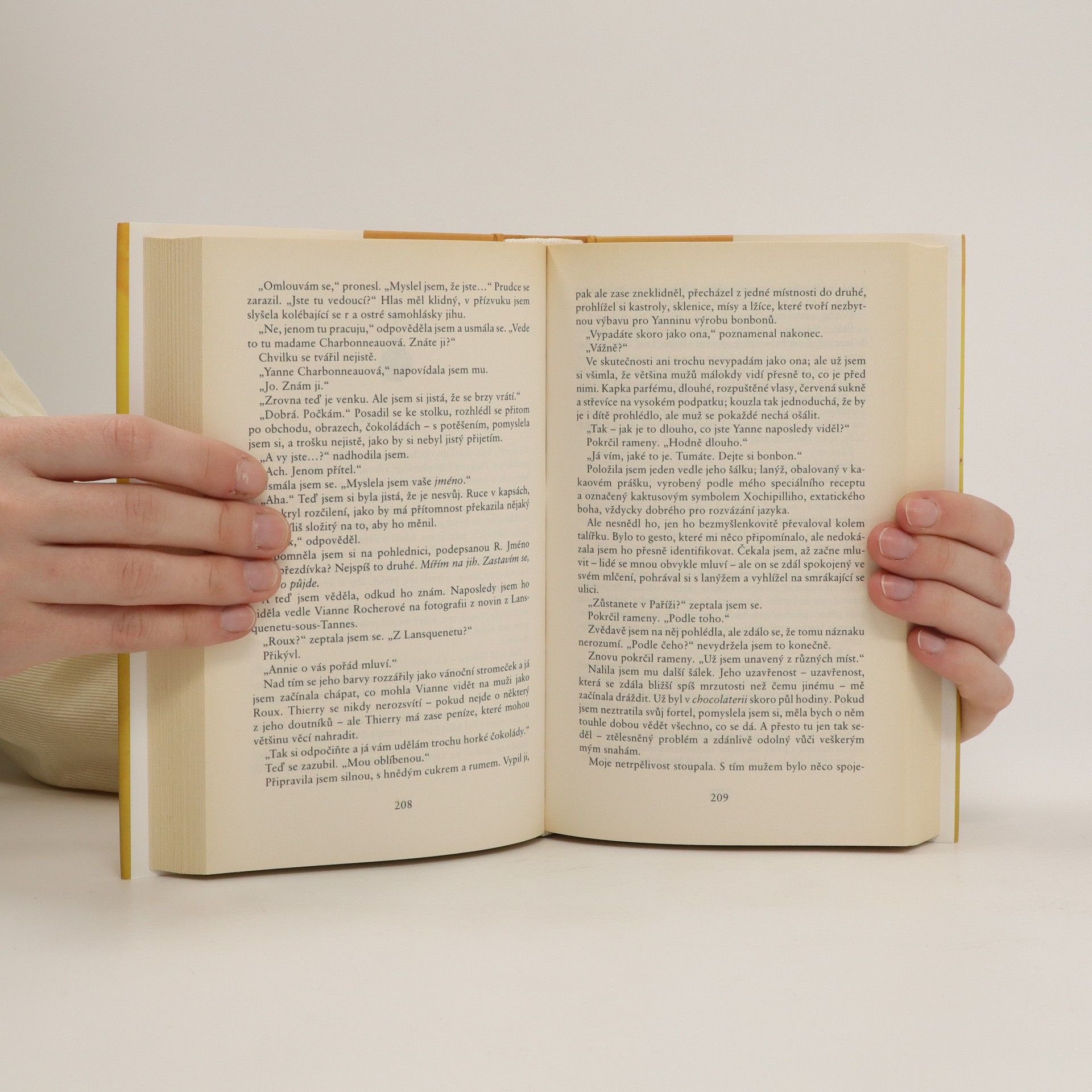 Vianne Rocherová, kterou si zamilovali čtenáři i filmoví diváci, se znovu objevuje na scéně, tentokrát v zapadlém obchůdku s čokoládou na pařížském Montmartru. Na první pohled byste ji nepoznali. Změnila si jméno, odložila jasně červené šaty a zahalila se do nenápadné šedi. Ze všech sil se snaží zapomenout na městečko Lansquenet a jeho obyvatele, jejichž životy od základu změnila, i na osudovou lásku. Dokonce se chce provdat za úctyhodného a poněkud nudného obchodníka a dopřát svým dcerám klidnou, spořádanou a finančně zaopatřenou rodinu. Jednoho podzimního dne se však u její chocolaterie objeví výstřední dívka Zozie de l´Alba a věci se dávají do pohybu. Minulost se vrací, kouzla ožívají a sen o poklidném životě mizí v nenávratnu…
