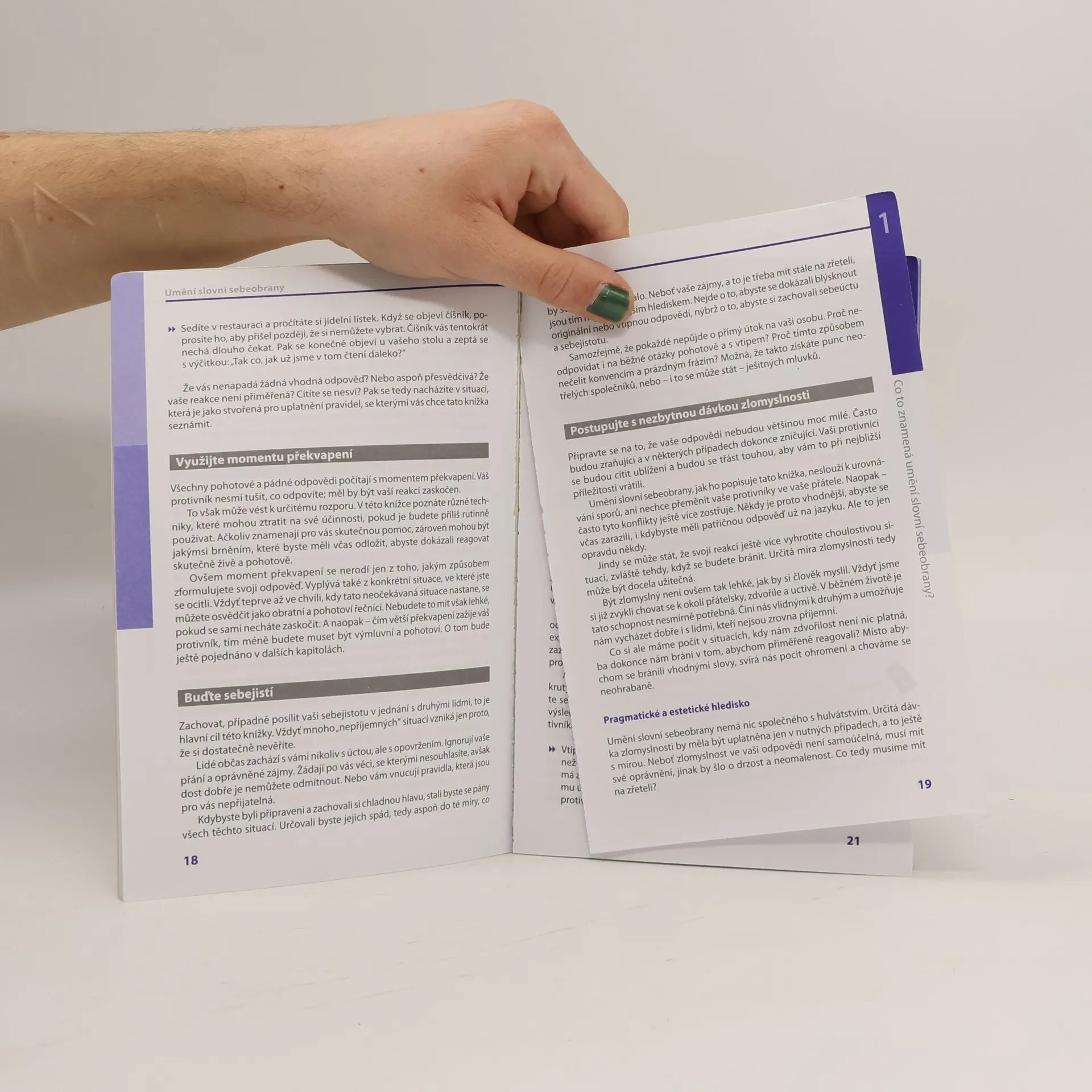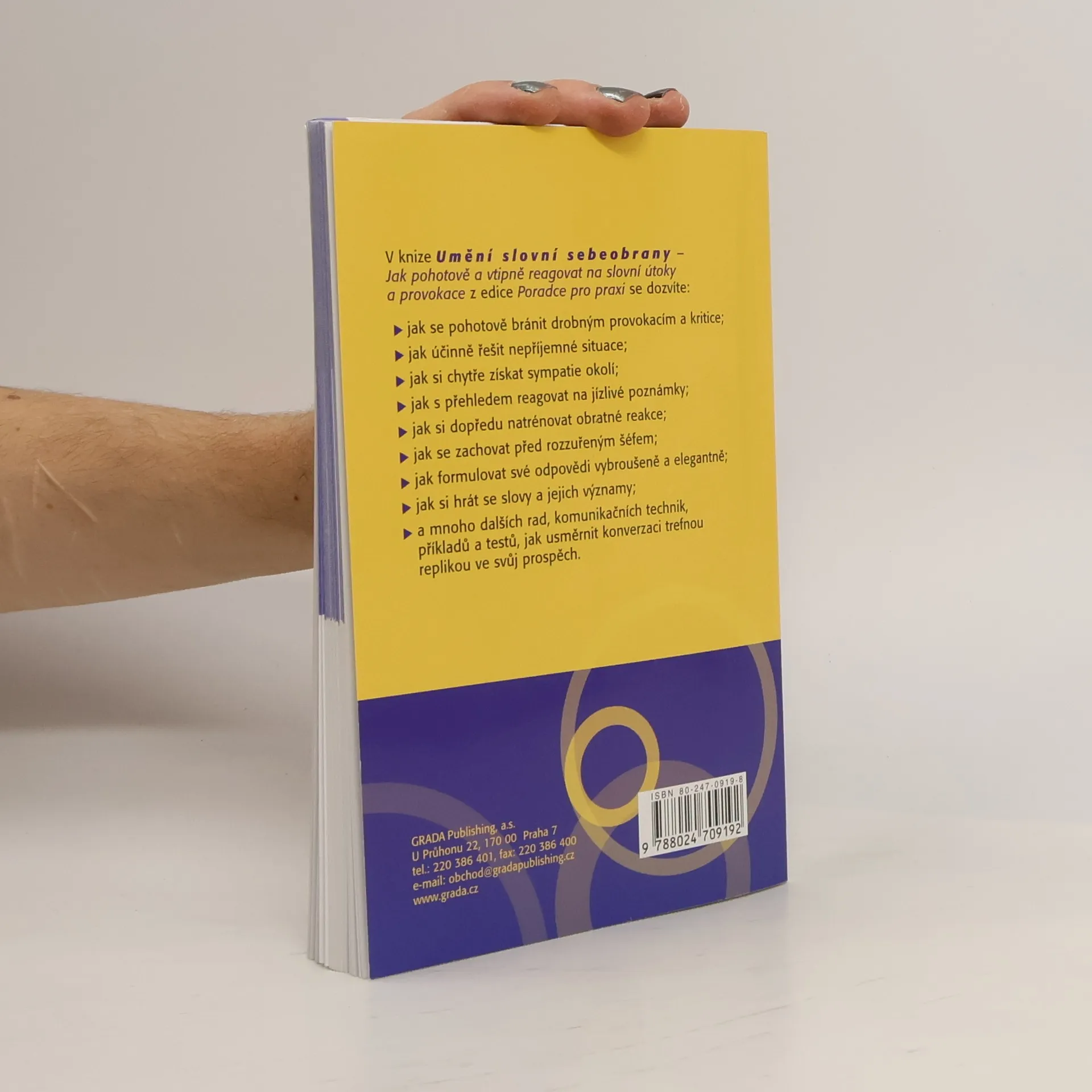 Kritizuje vás nespravedlivě šéf? Pošťuchují vás kolegové v práci? Vytáčí vás arogantní chování prodavačky v obchodě? Vyvolává právě partner hádku? Vyzkoušejte si na praktických příkladech a testech techniky, jak usměrnit diskusi trefnou replikou ve svůj prospěch a jak získat navrch. V knize se dozvíte: - jak se pohotově bránit drobným provokacím a kritice; - jak účinně řešit nepříjemné situace; - jak si chytře získat sympatie svého okolí; - jak s přehledem reagovat na jízlivé poznámky; - jak si dopředu natrénovat obratné reakce; - jak se zachovat před rozzuřeným šéfem; - jak formulovat své odpovědi vybroušeně a elegantně; - jak si hrát se slovy a jejich významy; - a mnoho dalších rad, komunikačních technik, příkladů a testů, jak usměrnit konverzaci trefnou replikou ve svůj prospěch.
