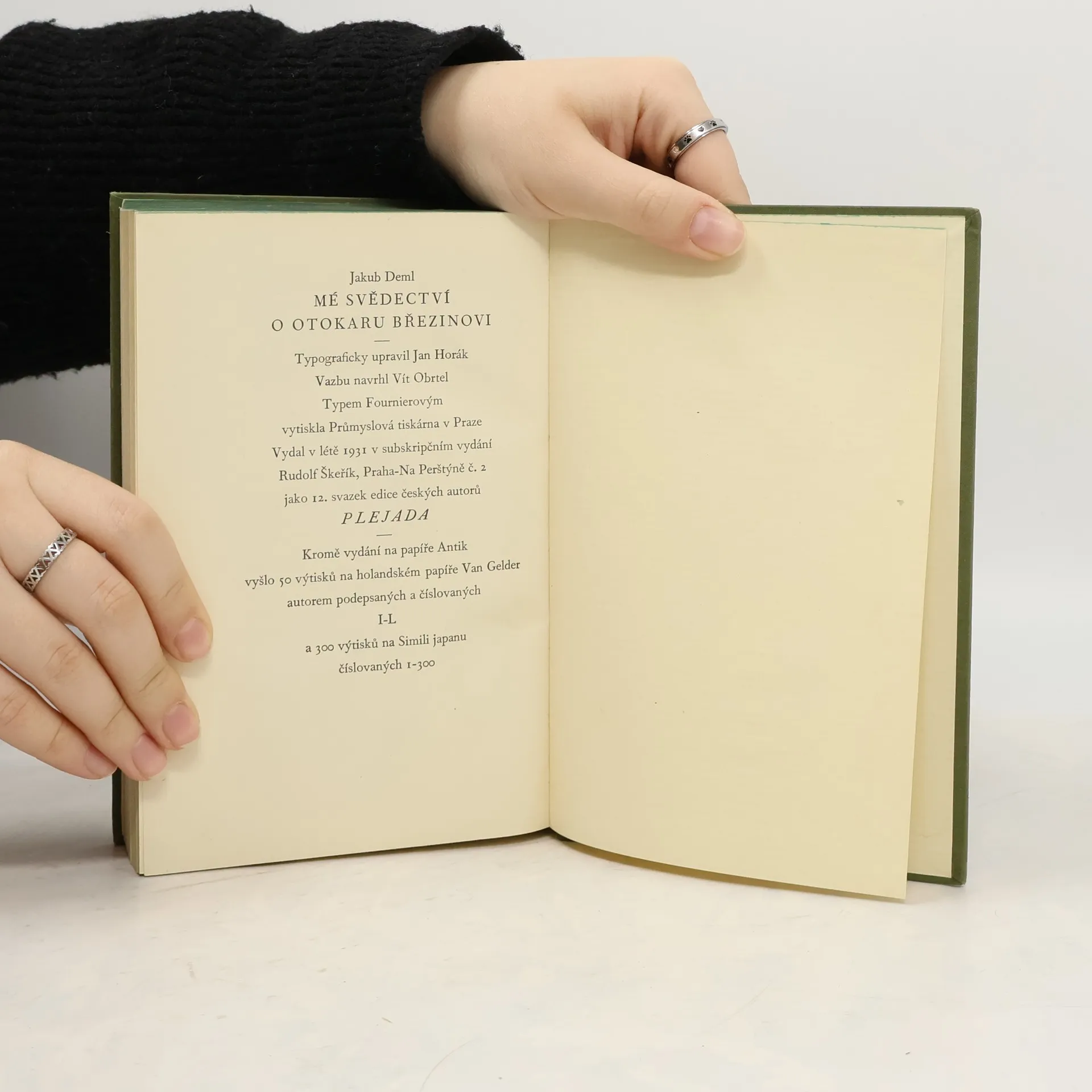 1. vydání. Mé svědectví o Otokaru Březinovi (1931 Rudolf Škeřík, reprint 1994 Votobia) je vzpomínková kniha českého básníka Jakuba Demla pojednávající o jeho přátelství a rozhovorech s Otokarem Březinou. Jedná se o vůbec nejobsáhlejší Demlovu knihu (má 554 stran). Deml v knize prezentuje i své vlastní názory; kniha navíc obsahuje jeho poznámky na okrajích knihy.