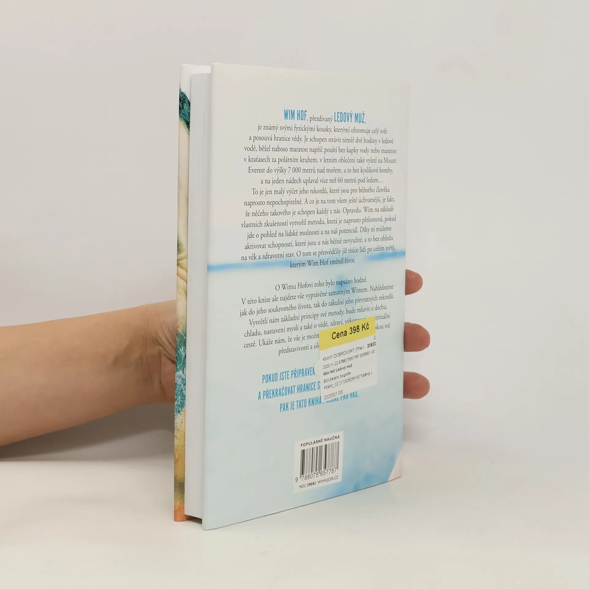 Jediná autorizovaná kniha Wima Hofa představuje převratnou metodu, která nám umožňuje využít náš fyzický i duševní potenciál. Wim Hof, známý jako Ledový muž, ohromuje svět svými neuvěřitelnými výkony, jako je strávení téměř dvou hodin v ledové vodě, běhání maratonů bez vody a výstupy na Mount Everest bez kyslíku. Tyto rekordy mohou vypadat nepochopitelně, ale Hof tvrdí, že podobných schopností může dosáhnout každý z nás. Na základě svých zkušeností vytvořil metodu, která mění pohled na lidské možnosti a aktivuje nevyužité schopnosti, bez ohledu na věk či zdravotní stav. Tisíce lidí po celém světě již pocítily pozitivní změny ve svém životě díky této metodě. Kniha nabízí osobní pohled na Hofův život a zákulisí jeho rekordů. Vysvětluje základní principy jeho metody, včetně technik dýchání, práce s chladem, nastavení mysli a souvislostí se zdravím a spirituálním rozvojem. Hof ukazuje, že naše limity jsou určeny pouze hloubkou naší představivosti a silou přesvědčení. Pokud jste připraveni objevovat svůj potenciál a překonávat fyzické hranice, tato kniha je pro vás. „Tato metoda je jednoduchá, přístupná a vědecky podložená. Může ji praktikovat kdokoli, bez dogmat, pouze s přijetím a svobodou.“