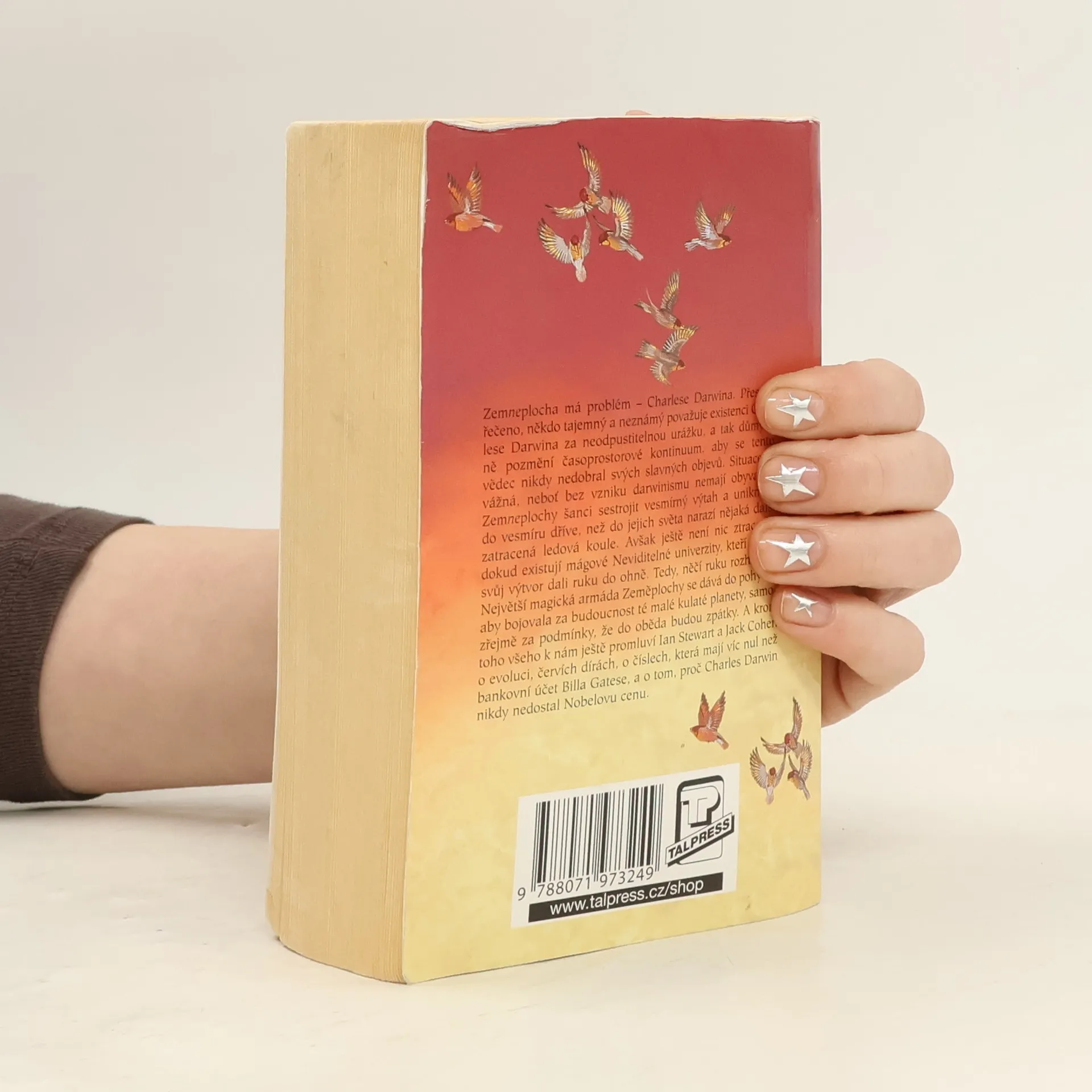 Zemneplocha má problém – Charlese Darwina. Přesněji řečeno, někdo tajemný a neznámý považuje existenci Charlese Darwina za neodpustitelnou urážku, a tak důmyslně pozmění časoprostorové kontinuum, aby se tento vědec nikdy nedobral svých slavných objevů. Situace je vážná, neboť bez vzniku darwinismu nemají obyvatelé Zemneplochy šanci sestrojit vesmírný výtah a uniknout do vesmíru dříve, než do jejich světa narazí nějaká další zatracená ledová koule. Avšak ještě není nic ztraceno, dokud existují mágové Neviditelné univerzity, kteří by za svůj výtvor dali ruku do ohně. Tedy, něčí ruku rozhodně. Největší magická armáda Zeměplochy se dává do pohybu, aby bojovala za budoucnost té malé kulaté planety, samozřejmě za podmínky, že do oběda budou zpátky. A krom toho všeho k nám ještě promluví Ian Stewart a Jack Cohen o evoluci, červích dírách, o číslech, které mají víc nul, než bankovní účet Billa Gatese, a o tom, proč Ch. Darwin nikdy nedostal Nobelovu cenu.