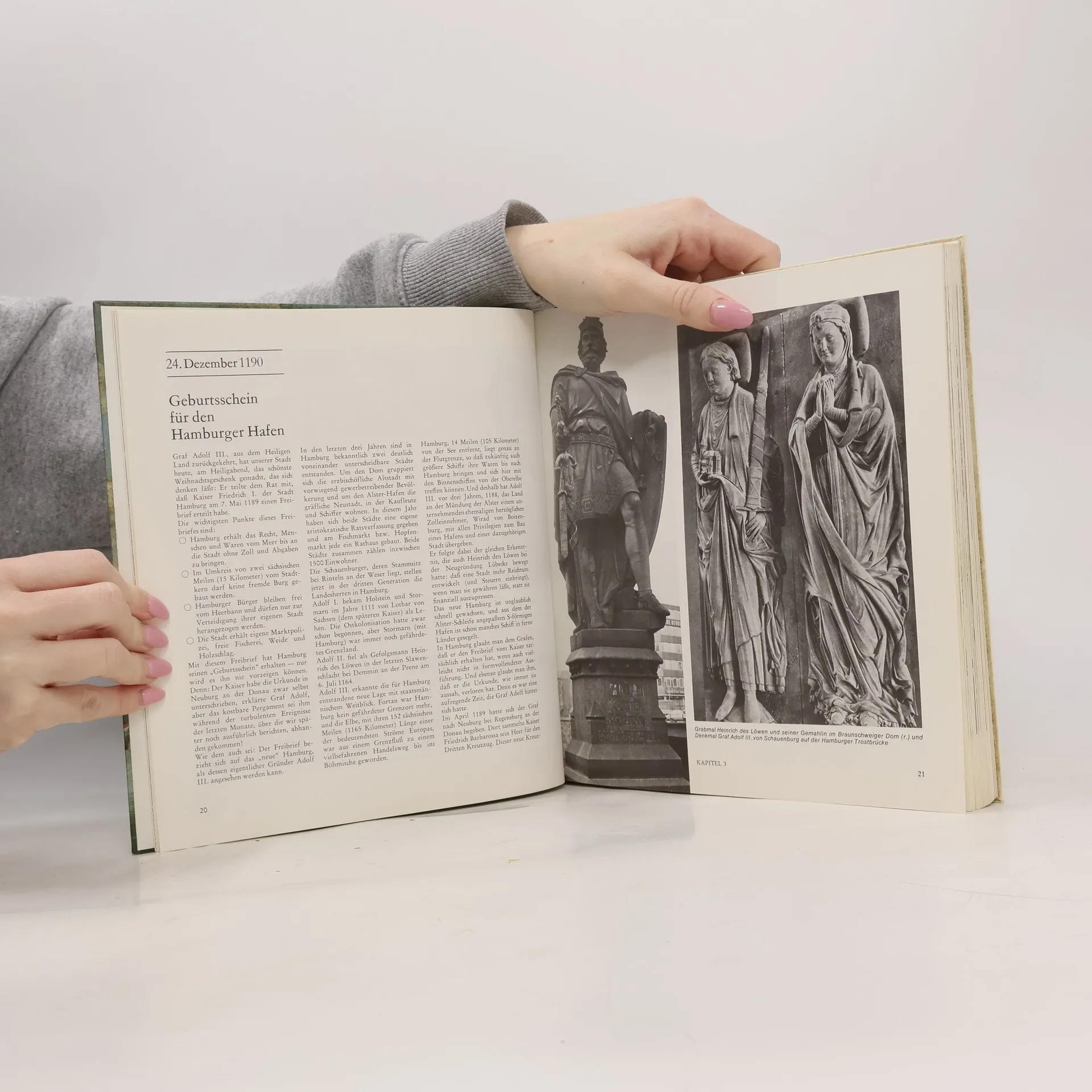Erik Verg lässt die über tausendjährige Geschichte Hamburgs lebendig werden. In spannenden Reportagen beschreibt er „Das Abenteuer, das Hamburg heißt“, als hätte er die Ereignisse und Zustände in der Stadt zwischen 831 und 1997 selbst erlebt. Der Leser wird so zum Zeitzeugen aller bedeutenden Stationen auf Hamburgs weitem Weg zur Weltstadt und begegnet den Personen, die die Stadt im Laufe der Jahrhunderte geprägt haben. Die reich bebilderten Reportagen erzählen von der Hammaburg, vom Freibrief Kaiser Barbarossas, natürlich von Störtebeker und der Hanse, von der größten deutschen Stadt des 17. und der Kulturmetropole des 18. Jahrhunderts, von napoleonischer Besatzung, Brand und Cholera, von der Zerstörung im Zweiten Weltkrieg, dem Wiederaufbau nach 1945 und von der jüngsten Vergangenheit. Martin Verg schildert die Entwicklung der letzten Jahre nach der Wiedervereinigung Deutschlands und gibt einen Ausblick auf Hamburgs Zukunft.