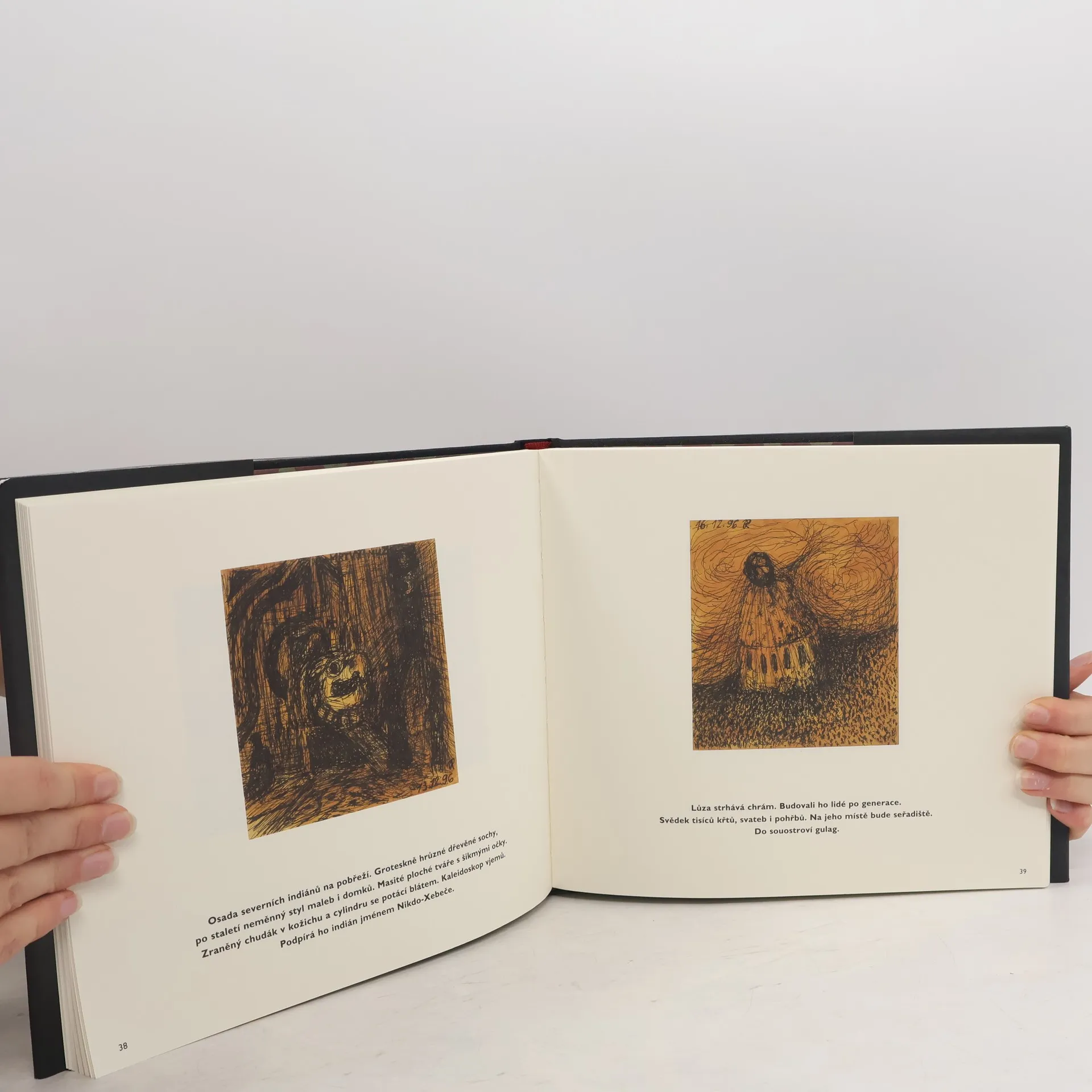 Známý malíř a sochař Jaroslav Róna, člen skupiny Tvrdohlaví, řadu let doma i na cestách kreslil své "umanuté kresby" plné nepokoje, konkrétního vidění i symbolických významů. Většinu z nich doprovodil vlastním krátkým textem či citátem z literatury. Kresby postupně vytvořily pozoruhodný cyklus, vtahující diváka (čtenáře) do naléhavého, drásavého Rónova vnitřního světa, zrcadlícího znepokojivé stránky světa vnějšího. Kniha shrnuje celý Rónův cyklus kreseb a textů, doprovozena je doslovem Jiřího Oliče.