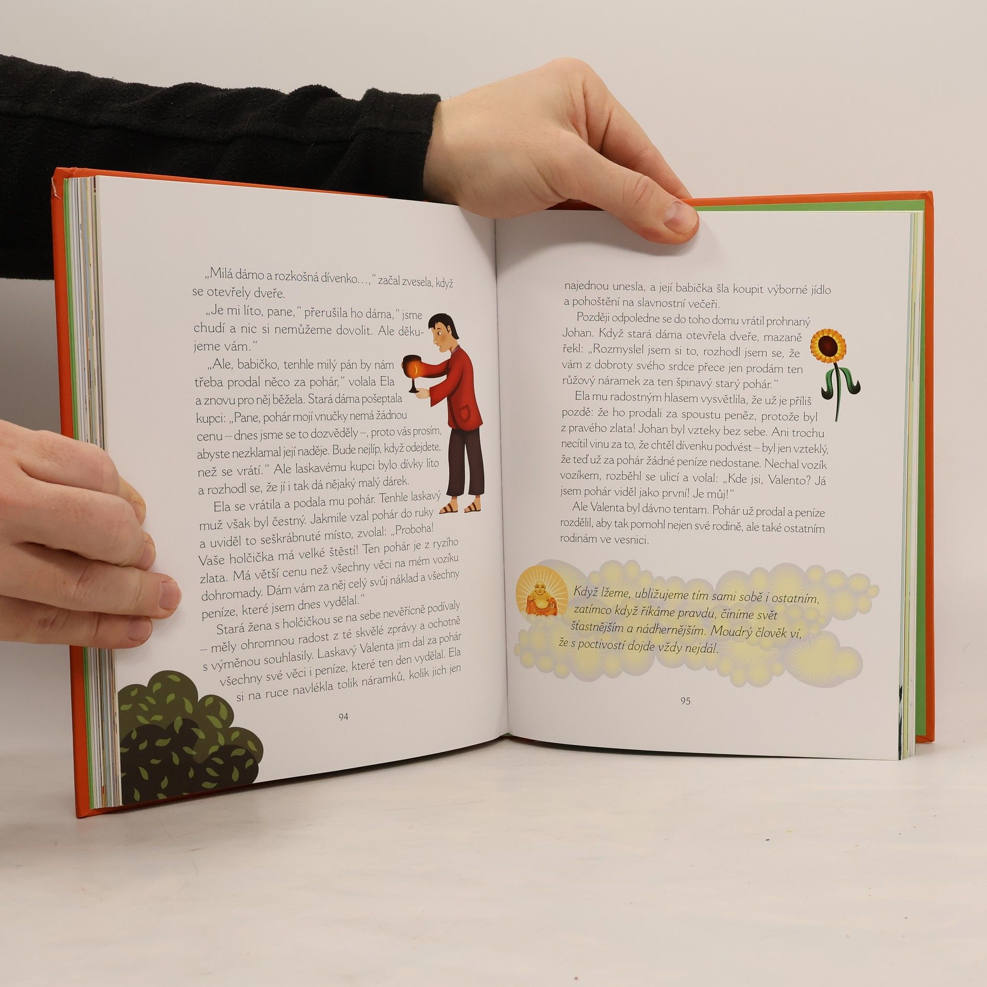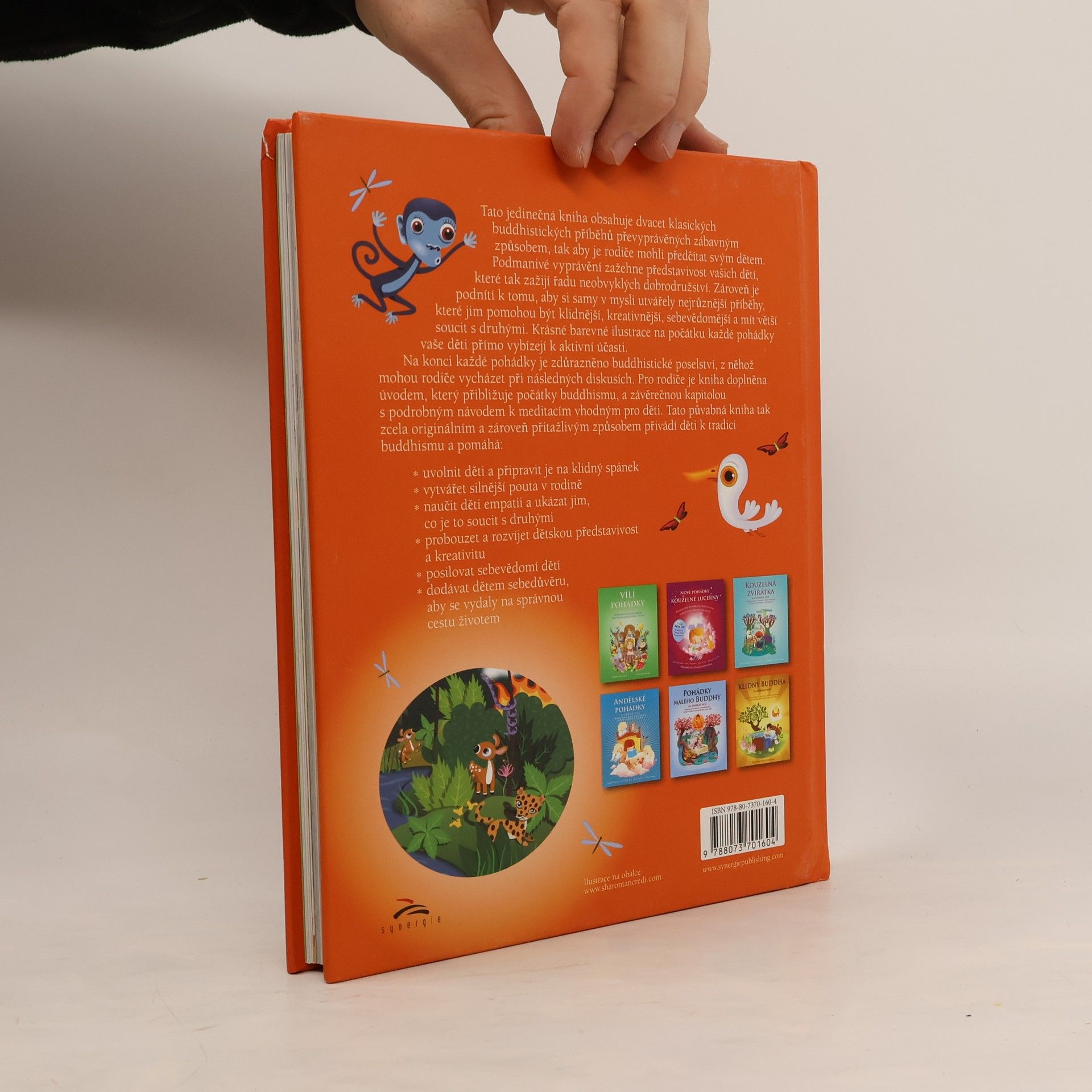 Tato kniha obsahuje dvacet klasických buddhistických příběhů převyprávěných zábavným způsobem, tak aby je rodiče mohli předčítat svým dětem. Podmanivé vyprávění podnítí představivost vašich dětí, které tak zažijí řadu neobvyklých dobrodružství. Zároveň je podnítí k tomu, aby si samy v mysli utvářely nejrůznější příběhy, které jim pomohou být klidnější, kreativnější, sebevědomější a mít větší soucit s druhými. Krásné barevné ilustrace na počátku každé pohádky vaše děti přímo vybízejí k aktivní účasti. Na konci každé pohádky je zdůrazněné buddhistické poselství, z něhož mohou rodiče vycházet při následných diskusích. Pro rodiče je kniha doplněna úvodem, který přibližuje počátky buddhismu a závěrečnou kapitolou s podrobným návodem k meditacím vhodným pro děti. Tato půvabná kniha tak zcela originálním a zároveň přitažlivým způsobem přivádí děti k tradici buddhismu a pomáhá: uvolnit děti a připravit je na klidný spánek vytvářet silnější pouta v rodině naučit děti empatii a ukázat jim, co je to soucit s druhými probouzet a rozvíjet dětskou představivost a kreativitu posilovat sebevědomí vašich dětí dodávat dětem sebedůvěru, aby se vydalo na správnou cestu životem.