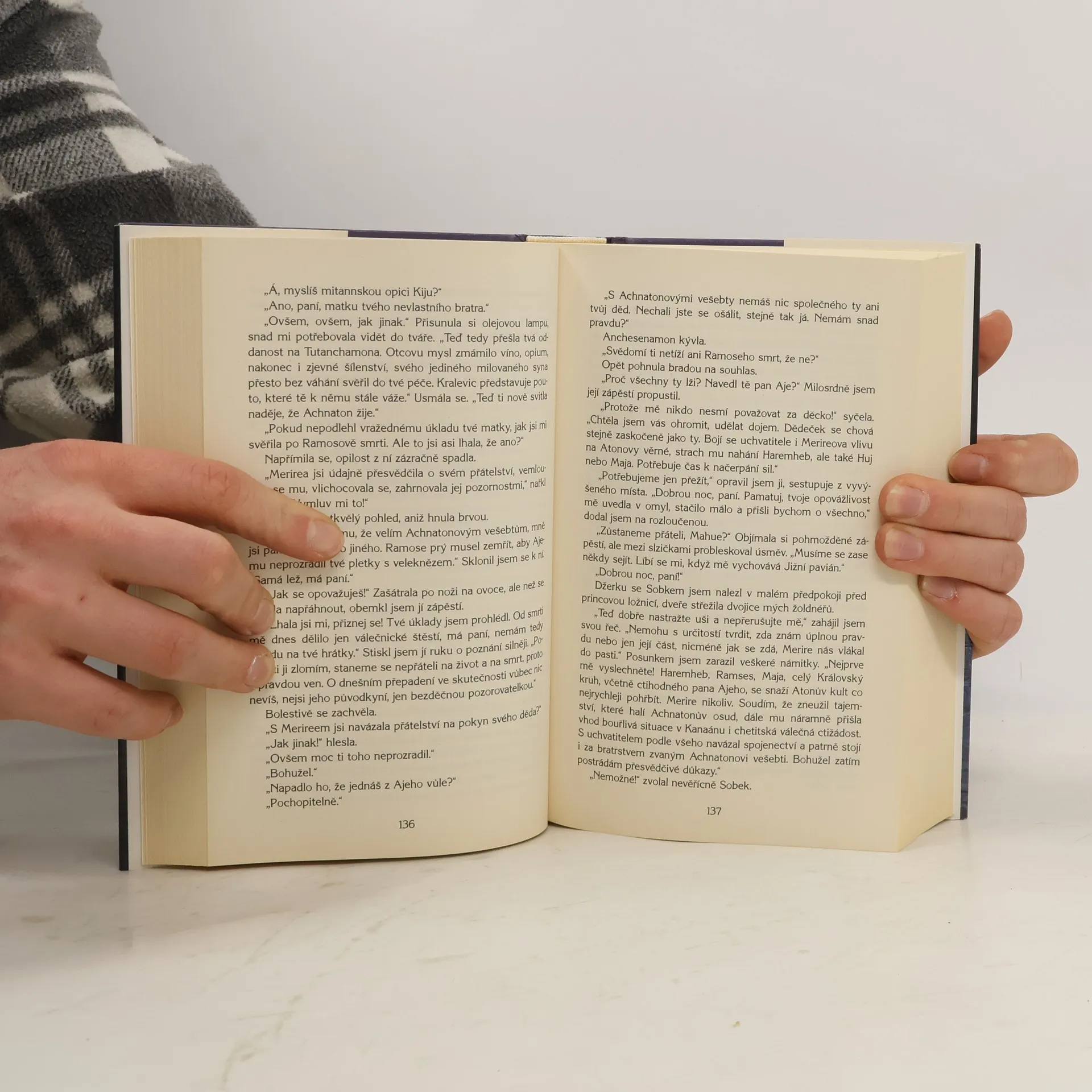 Mahu vzešel z prostých poměrů, ale vlastní pílí a oddaností si dokázal získat přízeň panovnického rodu. Jako důvěrník krále Achnatona se stal očitým svědkem náboženské reformy, která do země přinesla pouze rozbroje, bídu a hlad. Když pak kacířský faraon jednoho dne beze stopy zmizel, zastánci starých pořádků jej hbitě označili za mrtvého a vládcem ustanovili šestiletého Tutanchamona. O bezpečí mladičkého vladaře, který je v rozkolísaných časech jedinou zárukou egyptské jednoty, se stará loajální Mahu. Sotva se však v zemi podaří nastolit křehkou mocenskou rovnováhu, dorazí do královského města Théb neuvěřitelná zpráva. Achnaton se vrátil, vítězně táhne nilskou deltou a shromažďuje šiky odhodlaných stoupenců! Kdo jiný může přesvědčivě potvrdit totožnost údajného faraona než muž, který byl po léta jeho věrným stínem? Mahu se tedy v doprovodu zaníceného Atonova velekněze Merirea vydává po proudu Nilu vstříc neobyčejnému dobrodružství… zdroj - Domino POZOR! Vyjde až 17. května 2010