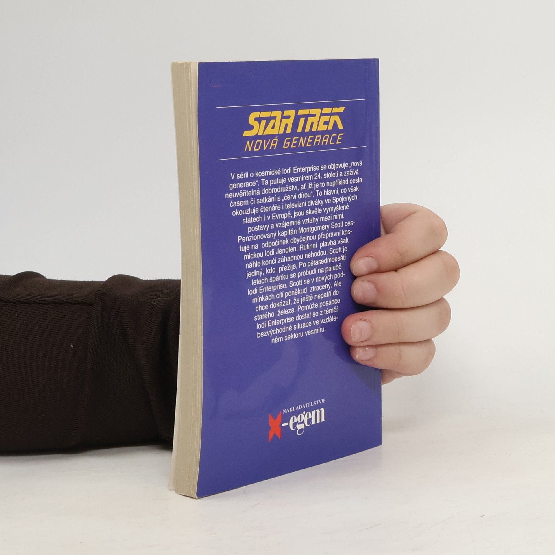 Penzionovaný kapitán Montgomery Scott cestuje na odpočinek obyčejnou přepravní kosmickou lodí Jenolen. Rutinní plavba však náhle končí záhadnou nehodou. Scott je jediní, kdo přežije. Po pětasedmdesáti letech spánku se probudí na palubě lodi Enterprise. Scott se v nových podmínkách cítí poněkud ztracený. Ale chce dokázat, že ještě nepatří do starého železa. Pomůže posádce lodi Enterprise dostat se z téměř bezvýchodné situace ve vzdáleném sektoru vesmíru. Po velkém úspěchu první televizní série Star Trek se objevilo v roce 1987 její pokračování pod označením Nová generace. Nový typ vesmírné lodi Enterprise, na jejíž palubě žije přes tisíc osob, řídí posádka „nové generace" - kapitán Jean-Luc Pikard, první důstojník William Riker, android Dat, lodní poradkyně Deanna Troi, mladý slepý poručík Geordi La Forge a další. Vzápětí po příznivé odezvě televizních diváků ve Spojených státech i v Evropě se objevily i první romány, napsané osvědčenými autory americké sci-fi literatury.... celý text