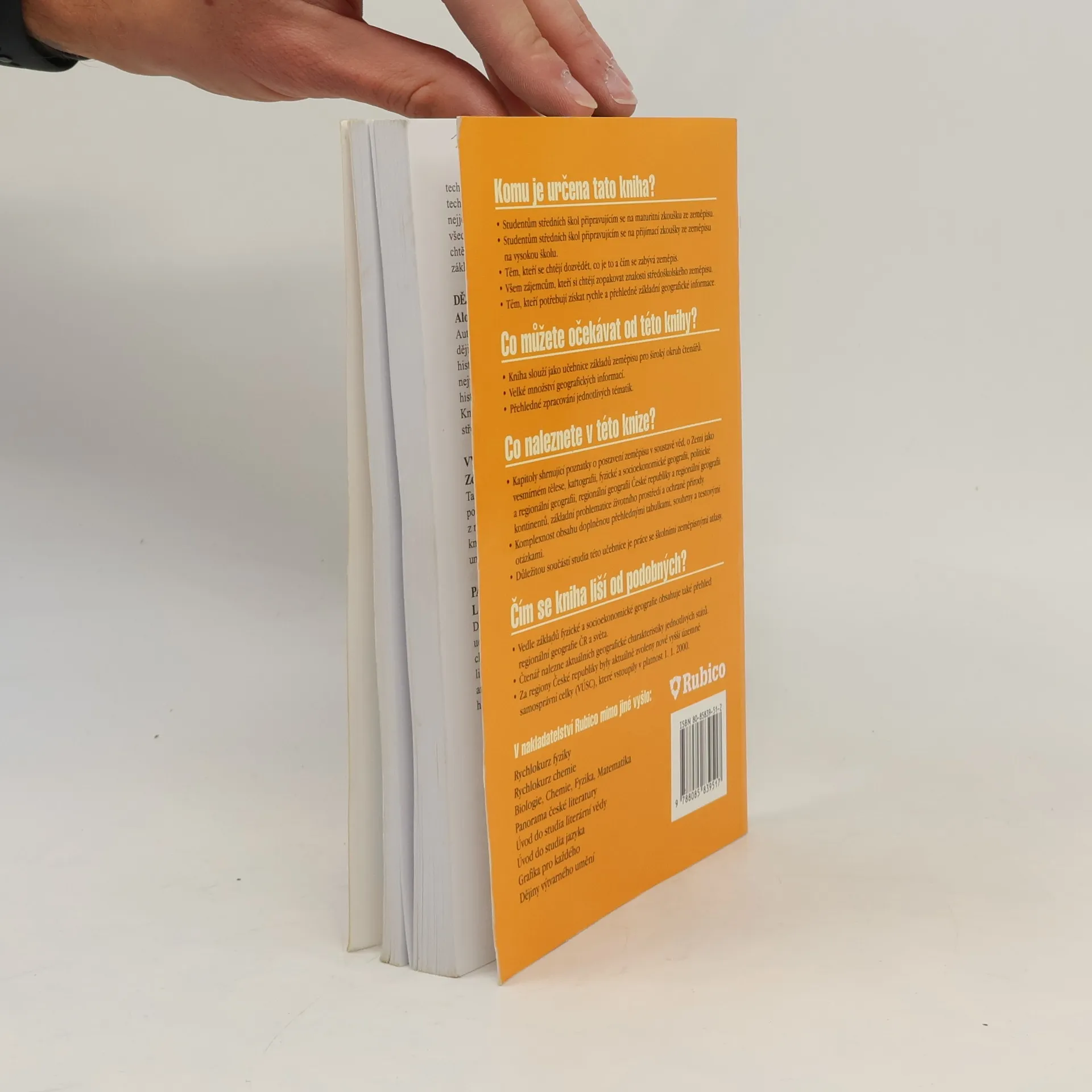 Pro studenty připravující se k maturitě nebo přijímací zkoušce, všem, kteří se chtějí dozvědět co je to a čím se zabývá zeměpis. Vedle základů fyzické a socioekonomické geografie obsahuje přehled regionální geografie ČR a světa, přehledné tabulky, souhrny a testové otázky. Zabývá se také prací se školními zeměpisnými atlasy.