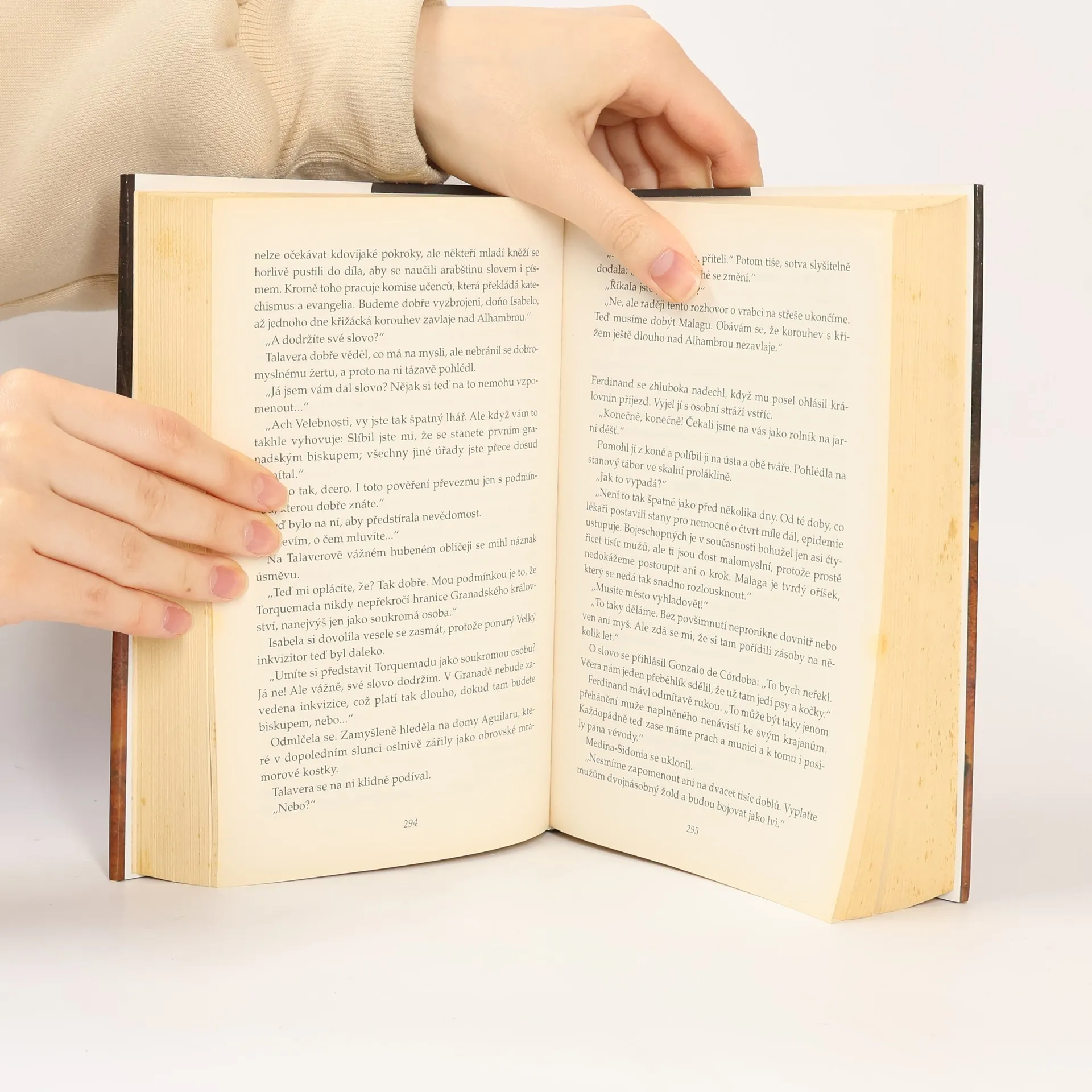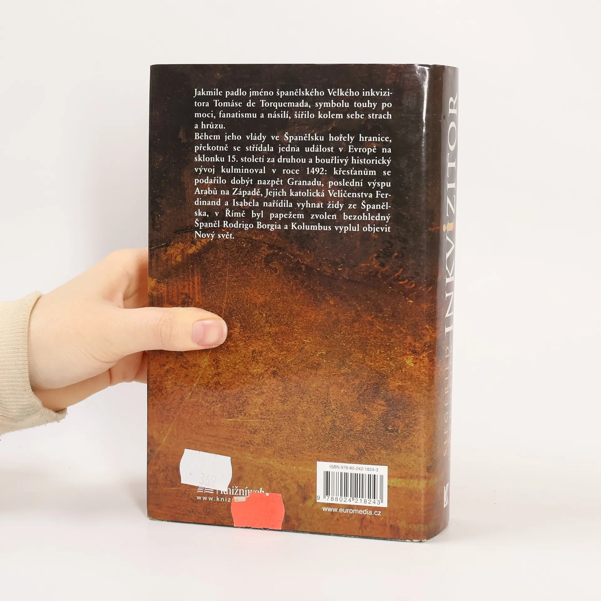 "Izák Marco žil v trvalém bolestném napětí, které jen občas pominulo v jeho snech. Jednou se viděl v roli Mojžíše, jak stojí na hoře Nebo, ale nehleděl odtud na Zaslíbenou zemi, nýbrž na celý svět, a všude viděl hořet dřevěné hranice, viděl, jak křesťané útočí na ghetta, viděl, jak pálí, zabíjejí, topí a věší židy, viděl prchat svůj národ z jedné země do druhé, viděl, že nikde nedošel kýženého klidu, a vyslal úpěnlivou modlitbu k Bohu, svému Hospodinovi." Pod strašlivou válkou Velkého inkvizitora Tomáse de Torquemada se sen Izáka Marka rychle změnil ve smutnou skutečnost… V tomto neobyčejně působivě napsaném románu prožíváme jednu z nejpřevratnějších epoch lidských dějin - přelom patnáctého a šestnáctého století. Nemluví se v něm pouze o skvělém rozšíření moci Jejich katolických Veličenstev Ferdinanda a Isabely, nýbrž i o lstivosti a pokrytectví Borgiů v Římě, a především o houževnaté zarputilosti a posedlosti Kryštofa Kolumba, který se po mnohaletém úsilí vydal roku 1492 objevovat Nový svět…