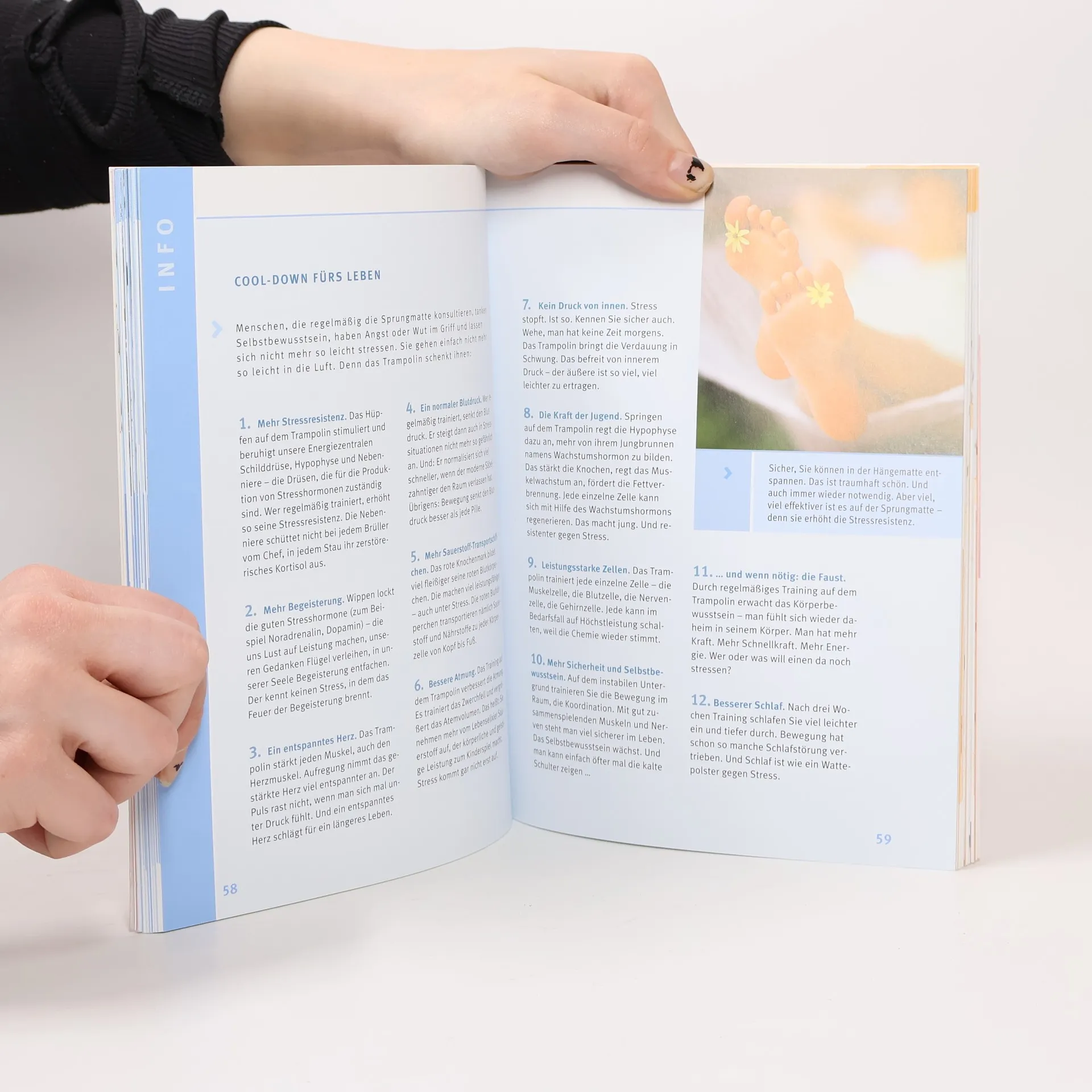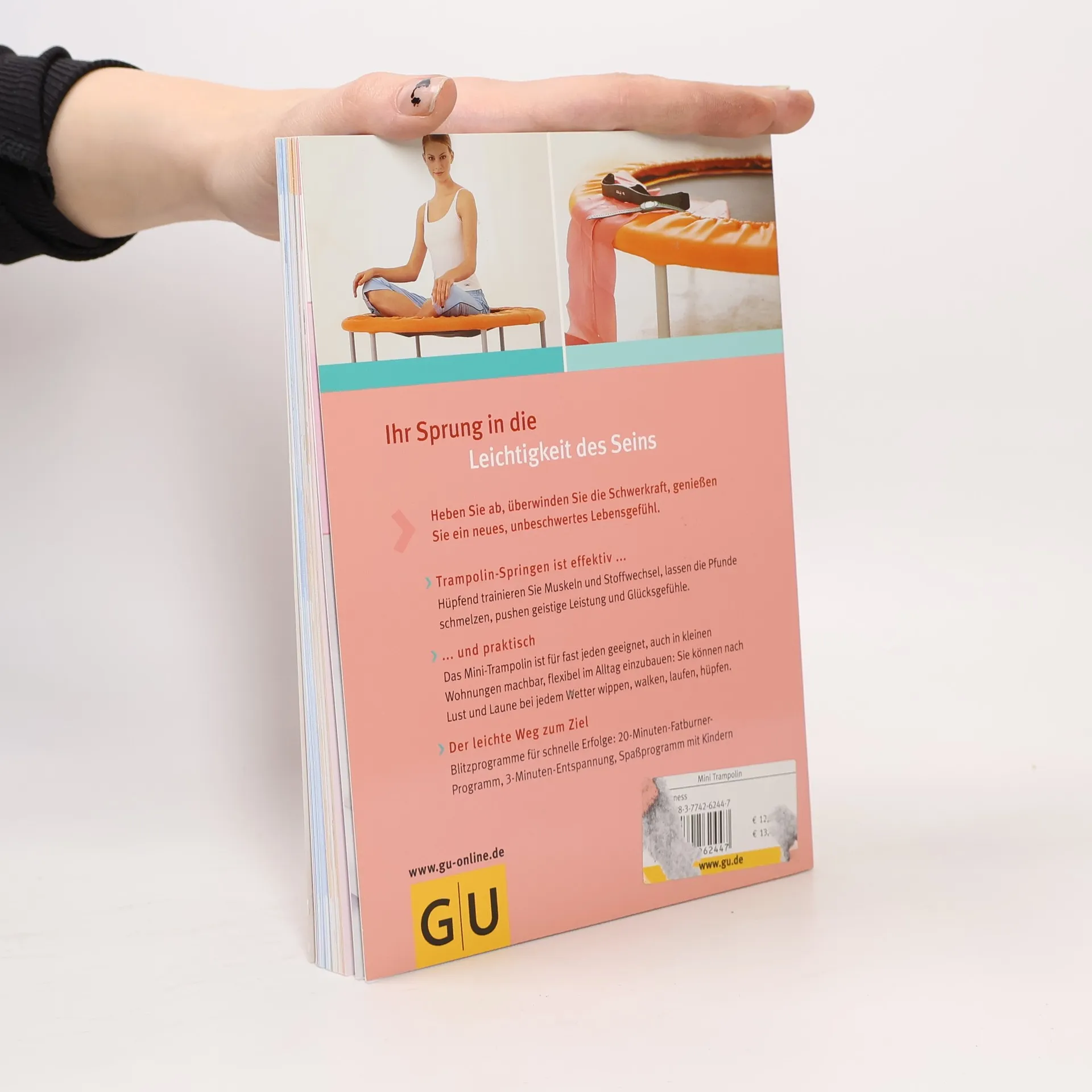 Heben Sie ab, überwinden Sie die Schwerkraft und geniessen Sie eine neue Leichtigkeit in Ihrem Leben. Trampolin-Springen ist höchst effektiv: es trainiert jeden Muskel, regt Stoffwechsel und Fettverbrennung an, pusht geistige Leistung und Glückshormone. Und es ist praktisch: für fast jeden geeignet, auch in kleinen Wohnungen machbar, flexibel im Alltag zu integrieren. Dieser GU-Ratgeber zeigt, wie man fröhlich hüpfend Pfunde abwerfen, die Figur straffen und Glückshormone produzieren kann. Mit 20-Minuten-Fatburner-Programm und speziellem Training für die Problemzonen.