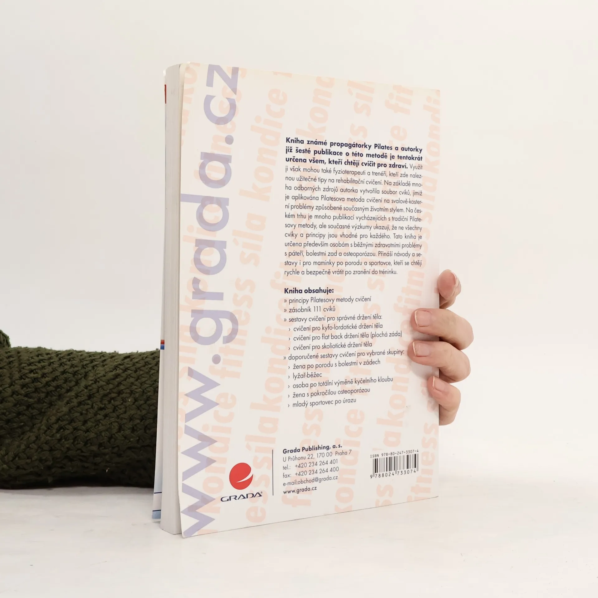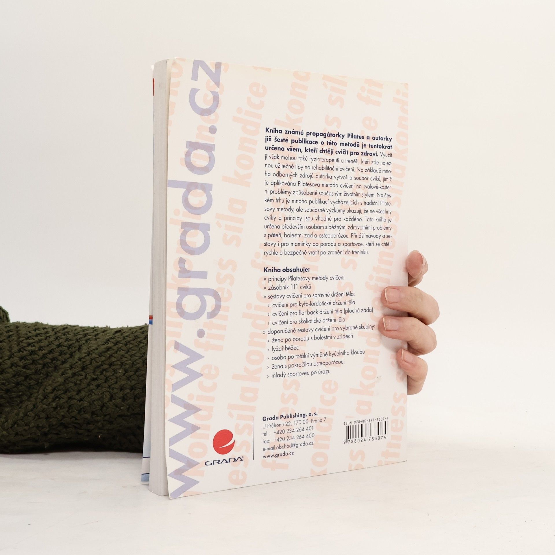 Podtitul: zdravé cvičení bez bolesti Kniha známé propagátorky Pilates a autorky již šesté publikace o této metodě je tentokrát určena všem, kteří chtějí cvičit pro zdraví, využít ji však mohou také fyzioterapeuti a trenéři, kteří zde naleznou užitečné tipy na rehabilitační cvičení. Na základě mnoha odborných publikací a článků autorka vytvořila soubor cviků, jimiž je aplikována Pilatesova metoda cvičení na svalově kosterní problémy způsobené současným životním stylem. Na českém trhu je mnoho publikací vycházejících s tradiční Pilatesovy metody, ale současné výzkumy ukazují, že ne všechny cviky a principy jsou vhodné pro každého. Tato kniha je určena především osobám s běžnými zdravotními problémy – se zvětšenou hrudní kyfózou, zvětšenou bederní a krční lordózou, osteoporózou, a přináší návody a sestavy i pro maminky po porodu a sportovce, kteří se chtějí rychle a bezpečně vrátit po zranění do tréninku.