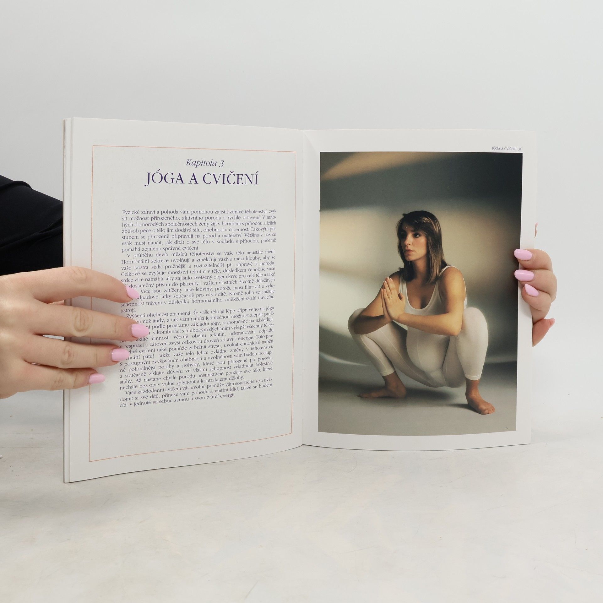 Průvodce zdravým a klidným těhotenstvím s návody k emocionální přípravě na porod. Kniha je určena ženám, které chtějí prožít své těhotenství nejen ve zdraví a pohodě, ale které si chtějí "vychutnat" toto období i po citové stránce. První kapitola obsahuje rady, jak se vyrovnat s emocionálními změnami v těhotenství a jak se uklidnit a koncentrovat s pomocí hlubokého dýchání a meditace. Další kapitoly radí, jak se správně stravovat, jak cvičit základní jógu a provádět masáže. Závěrečné dvě kapitoly popisují přírodní nebo alternativní terapie a jejich bezpečné a účinné využití pro zdravý průběh těhotenství. Uvádějí i nejběžnější onemocnění a zdravotní problémy běžné v těhotenství a nabízejí i návod k prevenci, domácí i profesionální léčbě s využitím přírodních terapií. Solidní publikace s "bezpečnými" radami. Přínosem knihy je především pohled na těhotenství jako na přirozené a šťastné období v životě ženy i snaha osvobodit ho /pokud probíhá normálně/ od často přehnaných a přetechnizovaných vymožeností dnešní moderní medicíny.