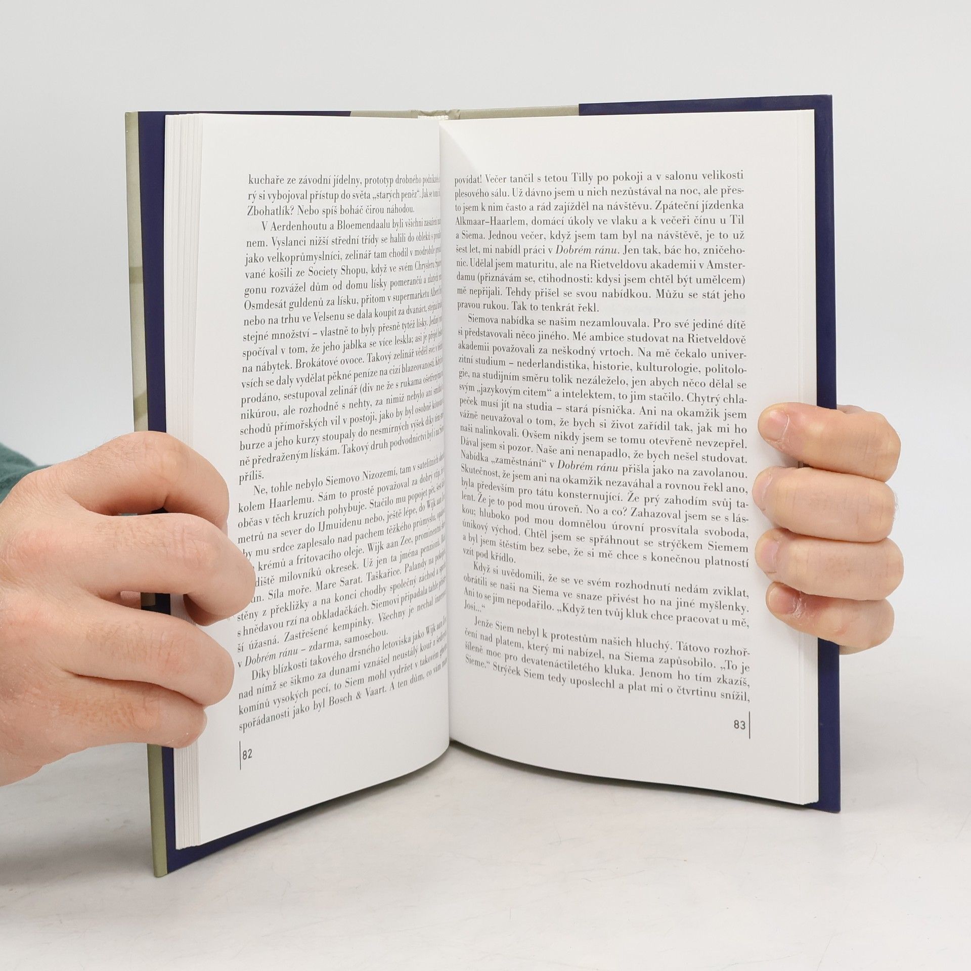Justýn Merkelbach je nejmladším šéfredaktorem v Nizozemsku a vede magazín Dobré ráno, zaměřený na hotelnictví. Za úspěchem časopisu stojí pouze dva lidé: jeho strýc Siem a asistentka Mabel, přičemž Siem používá různé triky, aby přiměl hotely k inzerci. Justýn, který vyrostl v přísném prostředí s matkou posedlou hygienou a otcem bez emocí, vždy obdivoval strýce. Po střední škole se připojuje k Dobré ráno a cestuje po Nizozemsku, aby hledal vhodná ubytovací zařízení. Když Siem spáchá sebevraždu, Justýn se vrací k událostem svého dětství a dospívání, aby odhalil pravé příčiny strýcovy smrti. Pomocí terapeuta zkoumá skryté aspekty strýcova a tetiččina manželství, včetně destruktivních tajemství a návštěv bordelů. Justýn se tak postupně dostává k hlubšímu porozumění jejich životům a sám se přehodnocuje. Začíná se ptát, zda obdivovat strýce za jeho volbu, nebo zda mohl jeho smrt nějak ovlivnit. Joost Zwagerman mistrně zachycuje psychologii postav a vytváří napínavou atmosféru, přičemž se zabývá tématy, která kontrastují s puritánstvím průměrného Holanďana.