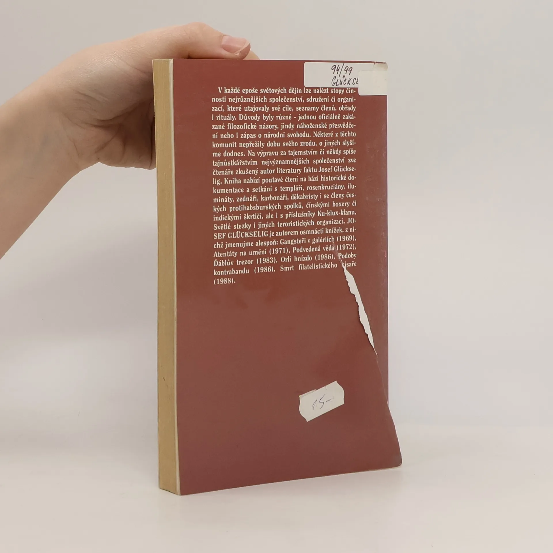 Kniha nabízí poutavé čtení na bázi historické dokumentace a setkání s templáři, rosenkruciány, ilumináty, zednáři, karbonáři, děkabristy i se členy českých protihabsburských spolků, čínskými boxery či indickými škrtiči, ale i příslušníky Ku-KLux-klanu, Světlé stezky i jiných teroristických organizací.