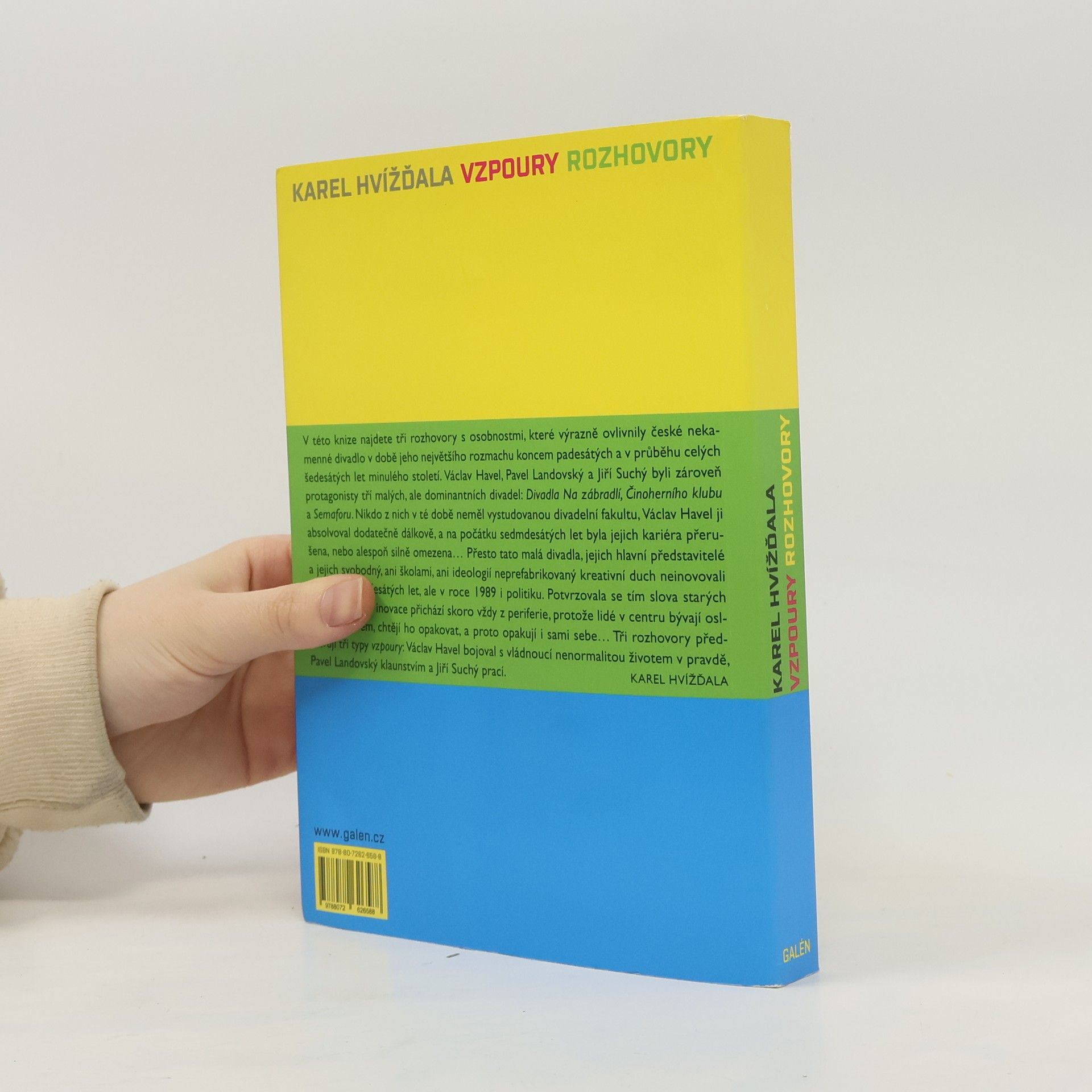 Tři rozhovory s osobnostmi, které výrazně ovlivnily české nekamenné divadlo v době jeho největšího rozmachu koncem padesátých a v průběhu celých šedesátých let minulého století. Václav Havel, Pavel Landovský a Jiří Suchý byli zároveň protagonisty tří malých, ale dominantních divadel: Divadla Na zábradlí, Činoherního klubu a Semaforu.Nikdo z nich v té době neměl vystudovanou divadelní fakultu,Václav Havel ji absolvoval dodatečně dálkově, a na počátku sedmdesátých let byla jejich kariéra přerušena, nebo alespoň silně omezena… Přesto tato malá divadla, jejich hlavní představitelé a jejich svobodný, ani školami, ani ideologií neprefabrikovaný kreativní duch neinovovali jen divadlo šedesátých let, ale v roce 1989 i politiku. Potvrzovala se tím slova starých a moudrých, že inovace přichází skoro vždy z periferie, protože lidé v centru bývají oslněni úspěchem, chtějí ho opakovat, a proto opakují i sami sebe… Tři rozhovory představují tři typy vzpoury:Václav Havel bojoval s vládnoucí nenormalitou životem v pravdě, Pavel Landovský klaunstvím a Jiří Suchý prací.