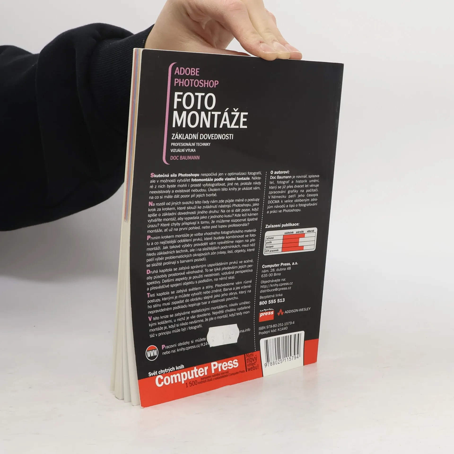 Skutečná síla Photoshopu spočívá v možnosti vytvářet fotomontáže podle vlastní fantazie. Některé montáže byste mohli vyfotografovat, jiné ne, protože nikdy neexistovaly. Tato kniha vám ukáže, na co si dát pozor při jejich tvorbě. Místo krok za krokem postupů se zaměříme na dovednosti, které pomohou montážím vypadat jako z jednoho kusu. Prvním krokem je volba vhodného fotografického materiálu a pečlivé oddělení prvků k kombinaci. Vysvětlíme základní techniky i složitější podmínky, jako jsou problematické okrajové zóny (vlasy, listí, objekty prolínající se s pozadím). Druhá kapitola se zaměřuje na uspořádání prvků ve scéně, aby působily prostorově věrohodně, včetně perspektivy, neostrosti a vzdušné perspektivy. Třetí kapitola se věnuje světlu a stínům, přičemž ukážeme, jak je vytvořit nebo změnit tak, aby barva a jas vrženého stínu odpovídaly obrázku. Zaměřujeme se na realistické montáže, nikoli umělecké koláže, kde je vše dovoleno. Úspěšná montáž je ta, kterou nikdo nepozná jako montáž. Pracovní obrázky si můžete stáhnout na www.docma.info nebo na http://knihy.cpress.cz/K1440. Autorem je Doc Baumann, novinář a fotograf, který se více než dvacet let věnuje grafice na počítači.