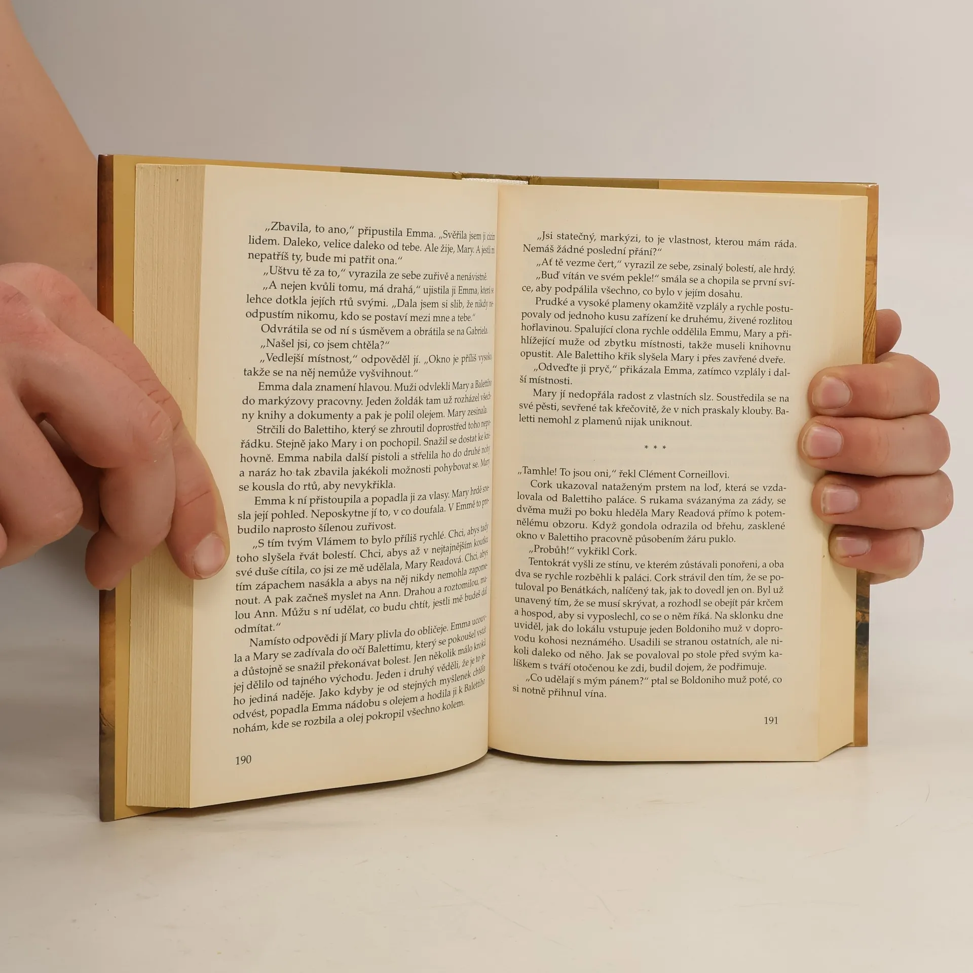 Pomsta! To je slovo ovládající srdce Mary Readové, která se vydala na cestu do Benátek. Její manžel, její velká láska, muž, kvůli kterému složila zbraně, byl brutálně zavražděn a její dcerka, maličká Ann, unesena. Ale Mary je bojovnice, před neštěstím necouvne. Znovu se převléká za muže, nitro stažené strašlivou bolesti, se vydává po stopách té, která jí zničila život, po stopách ďábelské Emmy de Mortefontaine. Má jednu jedinou stopu, aby ji mohla nalézt: jakéhosi benátského markýze, který zná zásadní informace týkající se pokladu, po kterém Emma tolik touží. Odhodlanější než kdykoli předtím a mnohem zkušenější vstupuje Mary do víru života v Benátkách, města karnevalu a intrik. Od té chvíle její život vyplňují bloudění, boje a útoky na lodě na všech mořích světa. Neúnavně se snaží najít svou dceru a zjistit, jaký je ten pohádkový poklad, který vyvolává tak silné vášně… Po triumfu knih Lože královny Eleanory a Ples vlků (1 700 000 výtisků prodaných ve Francii), vede nás Mireille Calmelová po stopách legendární pirátky Mary Readové, hrdinky řadící se mezi ty, které autorka miluje. Ženy smyslné, nezkrotné, vášnivé.