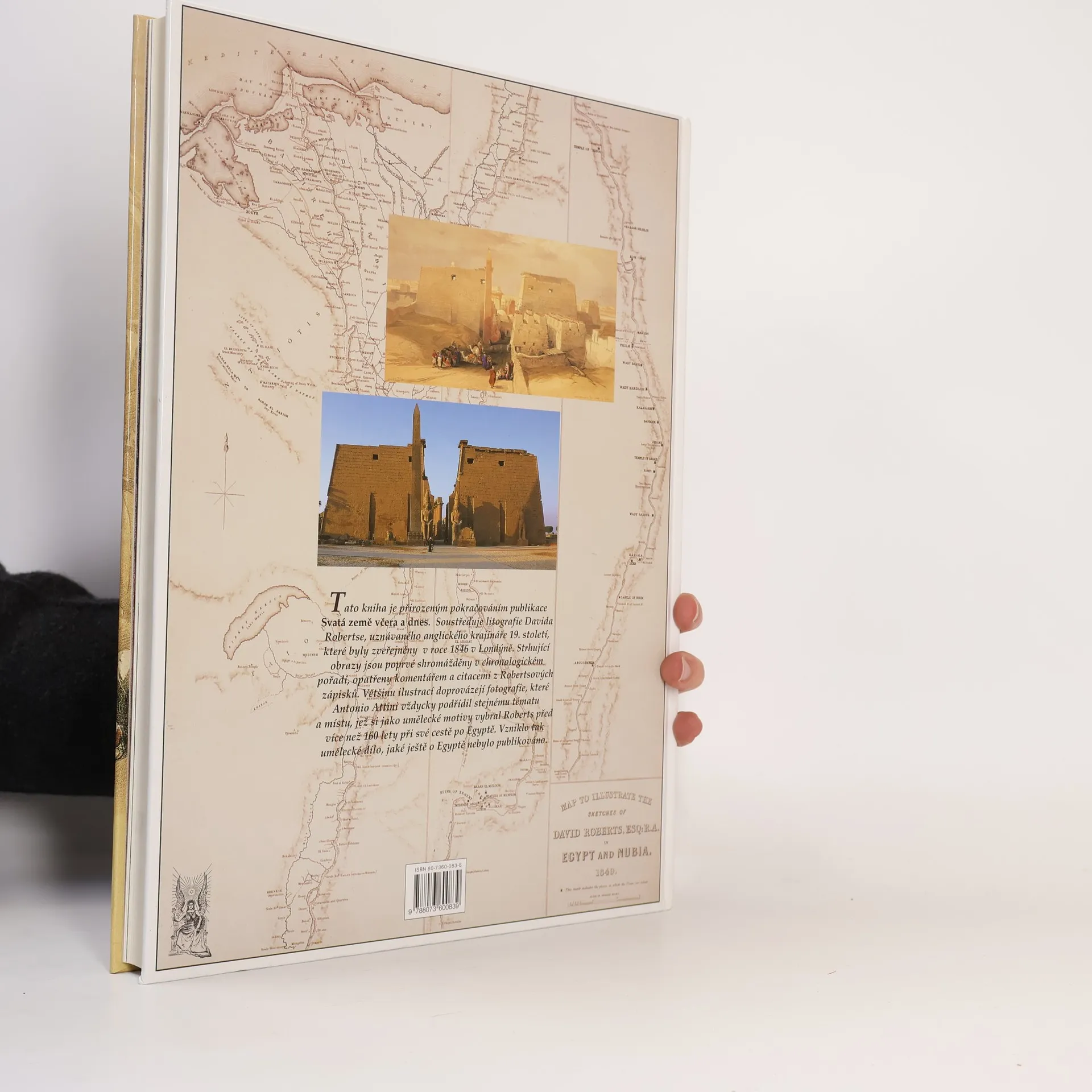 LITOGRAFIE DAVIDA ROBERTSE, R. A. Tato kniha je přirozeným pokračováním publikace Svatá země včera a dnes. Soustřeďuje litografie Davida Robertse, uznávaného anglického krajináře 19. století, které byly zveřejněny v roce 1846 v Londýně. strhující obrazy jsou poprvé shromážděny v chronologickém pořadí, opatřeny komentářem a citacemi Robertsových zápisků. Většinu ilustrací doprovázejí fotografie, které Antonio Attini vždycky podřídil stejnému tématu a místu, jež si jako umělecké motivy vybral Roberts před více než 160 lety při své cestě po Egyptě. Vzniklo tak umělecké dílo, jaké ještě o Egyptě nebylo publikováno.