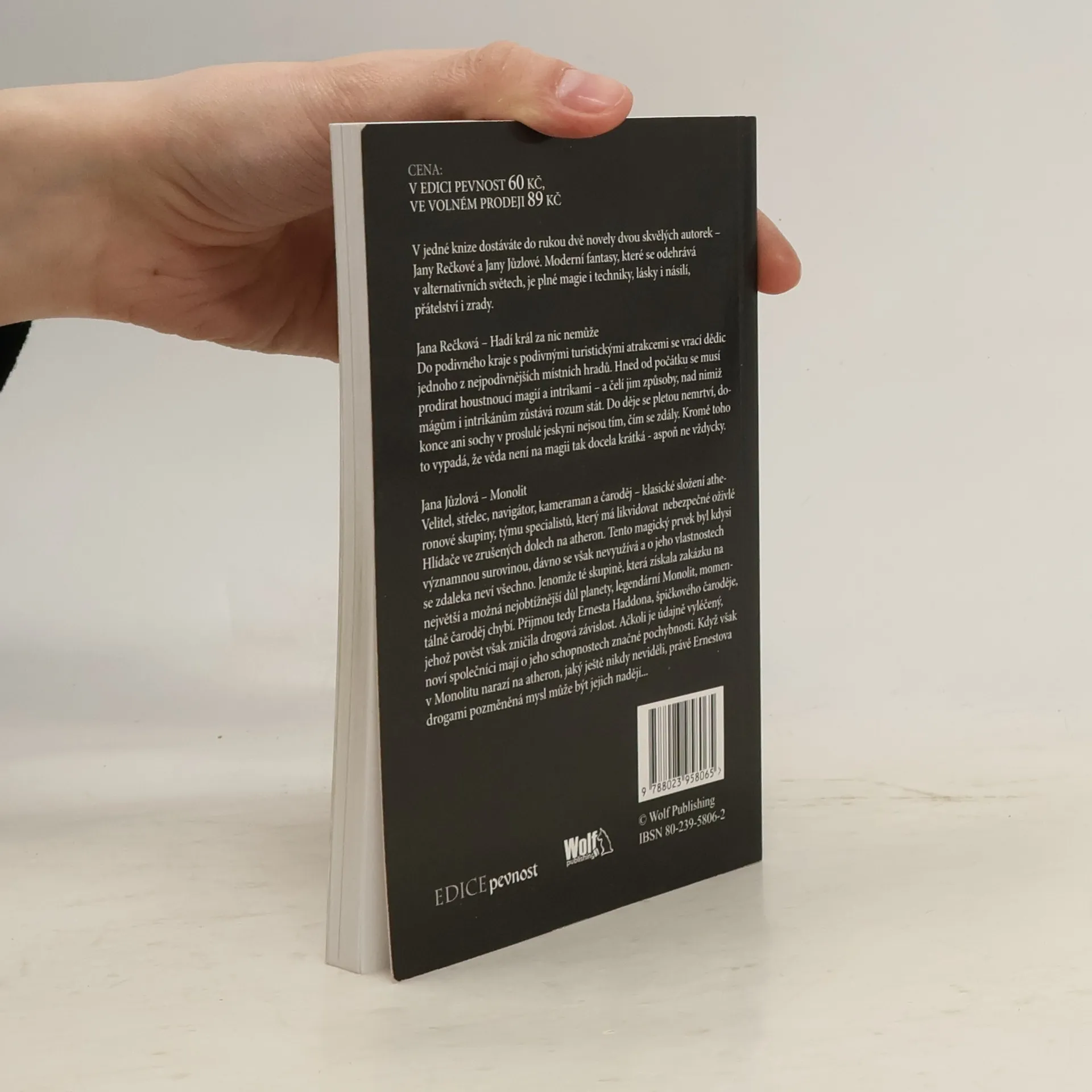 V jedné knize dostáváte do rukou dvě novely dvou skvělých autorek – Jany Rečkové a Jany Jůzlové. Moderní fantasy, které se odehrává v alternativních světech, je plné magie i techniky, lásky i násilí, přátelství i zrady.