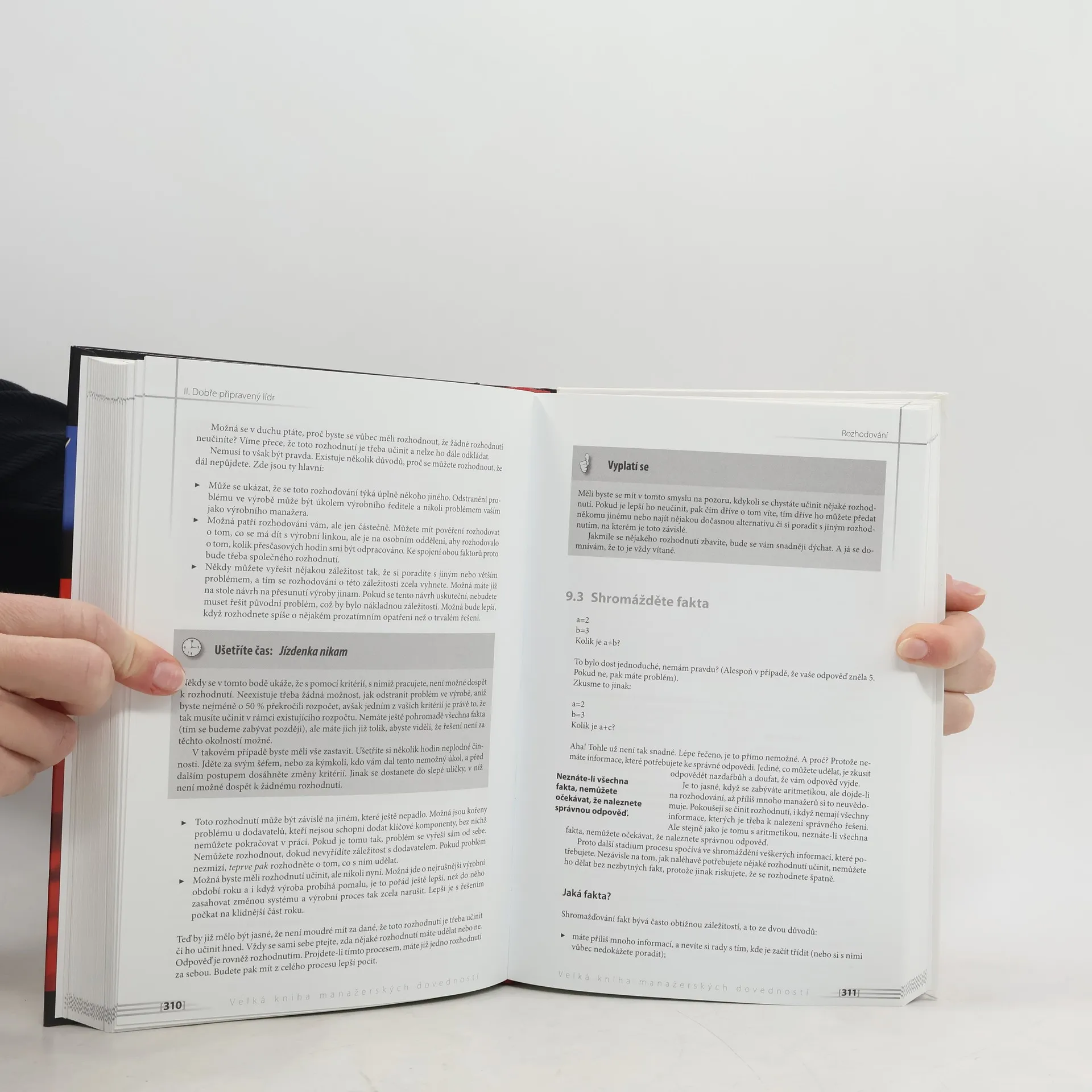 Tento praktický manuál pokrývá všechny hlavní situace, kterým musíte čelit při své práci. Potřebujete-li vybrat vhodného pracovníka, hodnotit a motivovat spolupracovníky, připravit prezentaci, projekt či rozpočet, vést týmové porady a koučovat, správně rozhodovat nebo zvládnout velké množství práce, dozvíte se spoustu rad k rychlému zapamatování a naprosto konkrétní tipy, co a jak říkat a dělat.