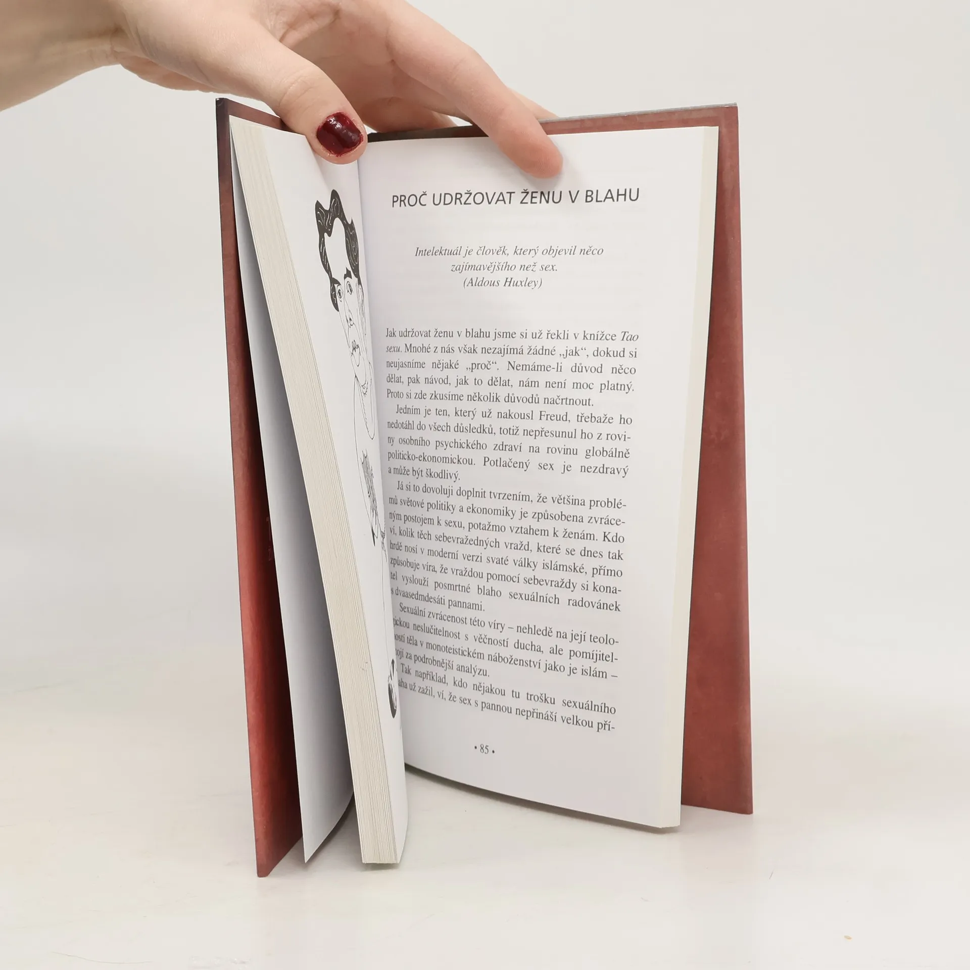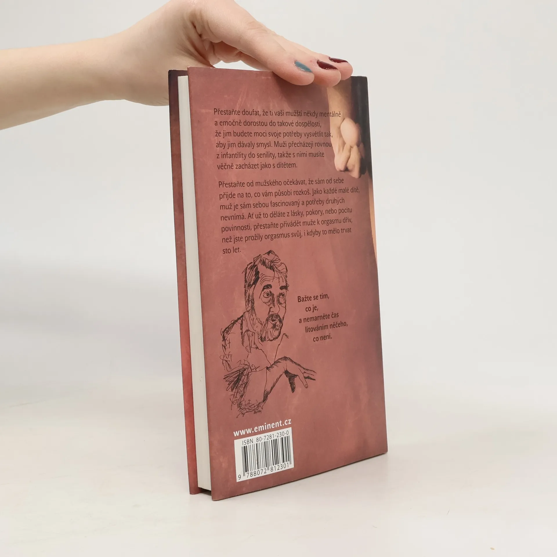 Přestaňte doufat, že ti vaši mužští někdy mentálně a emočně dorostou do takové dospělosti, že jim budete moci svoje potřeby vysvětlit tak, aby jim dávaly smysl. Muži přecházejí rovnou z infantility do senility, takže s nimi musíte věčně zacházet jako s dítětem. Přestaňte od mužského očekávat, že sám od sebe přijde na to, co vám působí rozkoš. Jako každé malé dítě, muž je sám sebou fascinovaný a potřeby druhých nevnímá. Ať už to děláte z lásky, pokory, nebo pocitu povinnosti, přestaňte přivádět muže k orgasmu dřív, než jste prožily orgasmus svůj, i kdyby to mělo trvat sto let. Skvělá a poučná kniha s podtitulem "aneb jak blaho alespoň předstírat" volně navazuje na autorův bestseller Tao sexu a je novým příspěvkem k věčnému tématu vztahů žen a mužů.... celý text