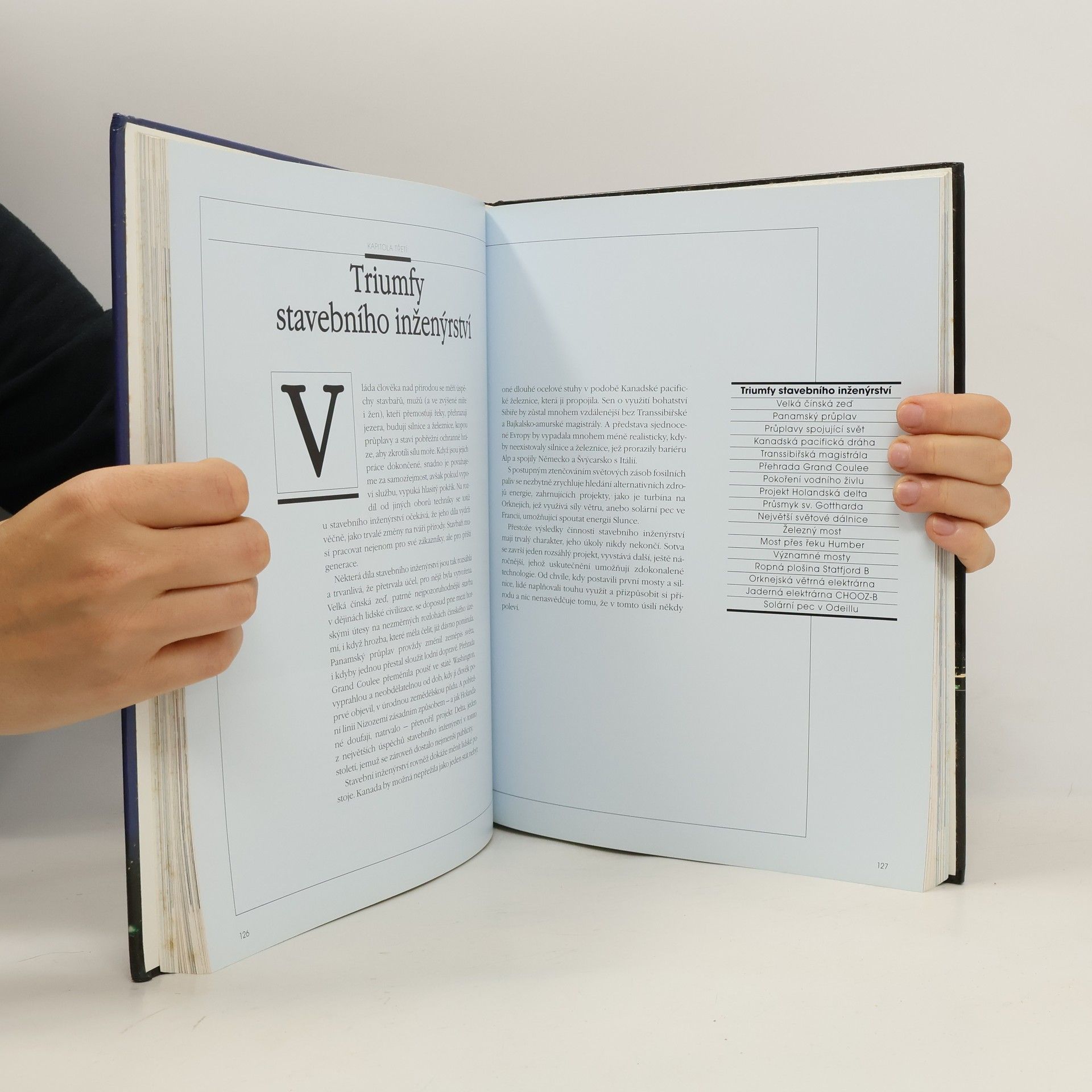 Kniha představuje historii stavitelství a stavebního inženýrství v jejich nejzdařilejších projevech. Seznamuje s paláci, chrámy, monolitickými skulpturami, mosty, přehradami, průplavy, železnicemi a tunely i vědeckými zařízeními pro kosmický výzkum či výzkum atomu. Ve svém celku podává výmluvné svědectví o hranicích možností stavebních technologií.