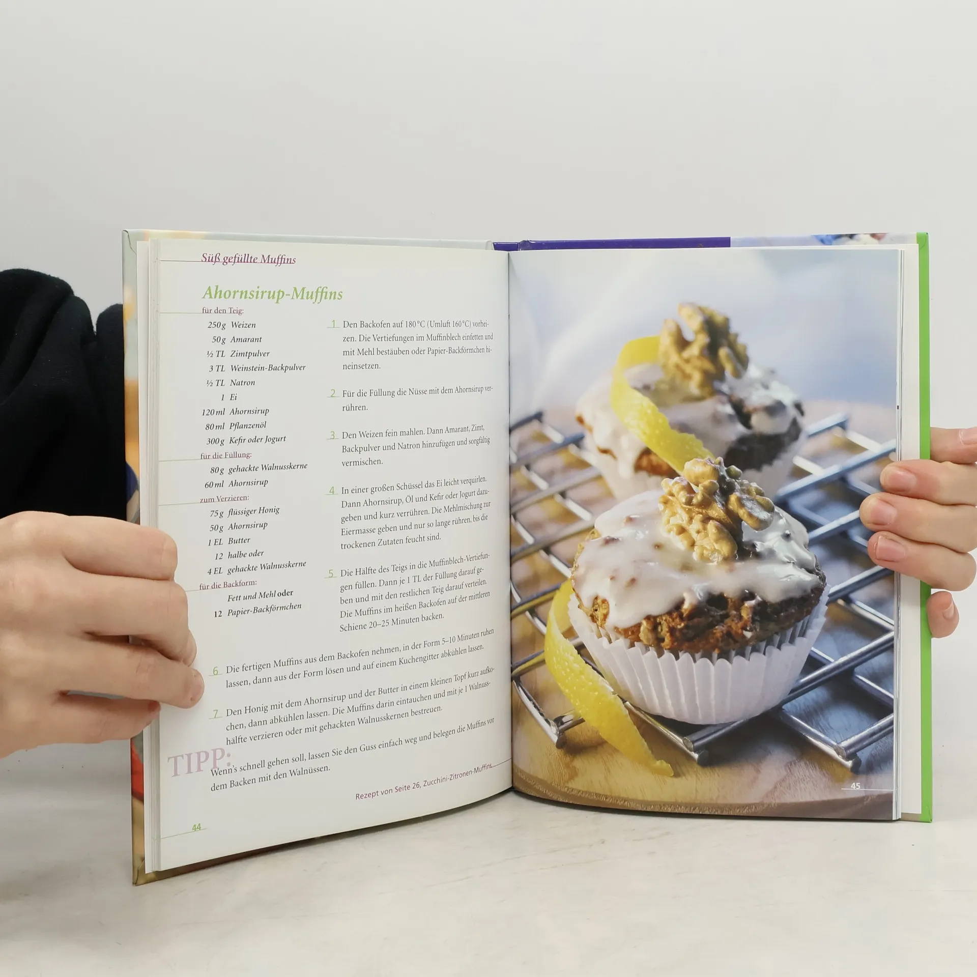 Muffins, das sind die beliebten saftigen, kleinen Kuchen aus Rührteig. Ihre Herstellung geht schnell und ist kinderleicht! Also eine ideale Idee zu jeder Gelegenheit, denn der Teig ist in 10–15 Minuten fertig zubereitet und die Backzeit beträgt nur ca. 25 Minuten. Und dass dies alles auch in gesunder und vollwertiger Variante lecker schmecken kann, zeigt „Miss Muffin“, die bekannte Muffin-Kochbuchautorin Jutta Renz. Ob traditionelle kanadische „bran muffins” aus Kleie oder raffinierte pikante Brokkoli-Mandel-Muffins, ob Cappucino-Muffin oder Orangen-Ananascreme-Muffin, überall wird nur mit naturbelassenen und gesunden Lebensmitteln gearbeitet. Frisch gemahlenes Getreide, Vollrohrzucker oder Honig, Öl oder Butter, Buttermilch oder Joghurt, kontrolliert angebaute Gemüse-, Obst- und Fruchtsorten, Nüsse und Gewürze aller Art verwandeln das Trendgebäck in gesunde Kraftpakete, die nie langweilig sind und immer schmecken. Die kleine Warenkunde erleichtert den Einstieg in das Vollwertmuffin-Backparadies, Tricks und Tipps sorgen für gutes Gelingen auch bei Backanfängern.