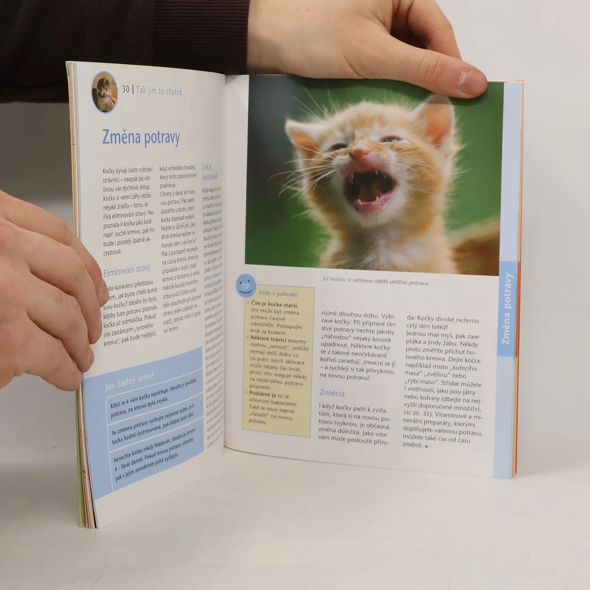 Získáte základní informace o trávicím cyklu kočky, množství energie, které potřebuje, vitamínech, minerálech a stopových prvcích nezbytných pro její organismus. Dočtete se, jaká kombinace krmiva zajistí plnohodnotnou výživu kočky, získáte užitečná doporučení ohledně výběru hotových (konzervovaných) krmiv, granulí. Nechybí nápadité recepty na domácí přípravu výživného a pro kočku chutného jídla. Zvláštní kapitoly jsou věnovány stravování obézní kočky (kdy má kočka nadváhu, dieta bez stresu), kočky s alergií či nemocné kočky.